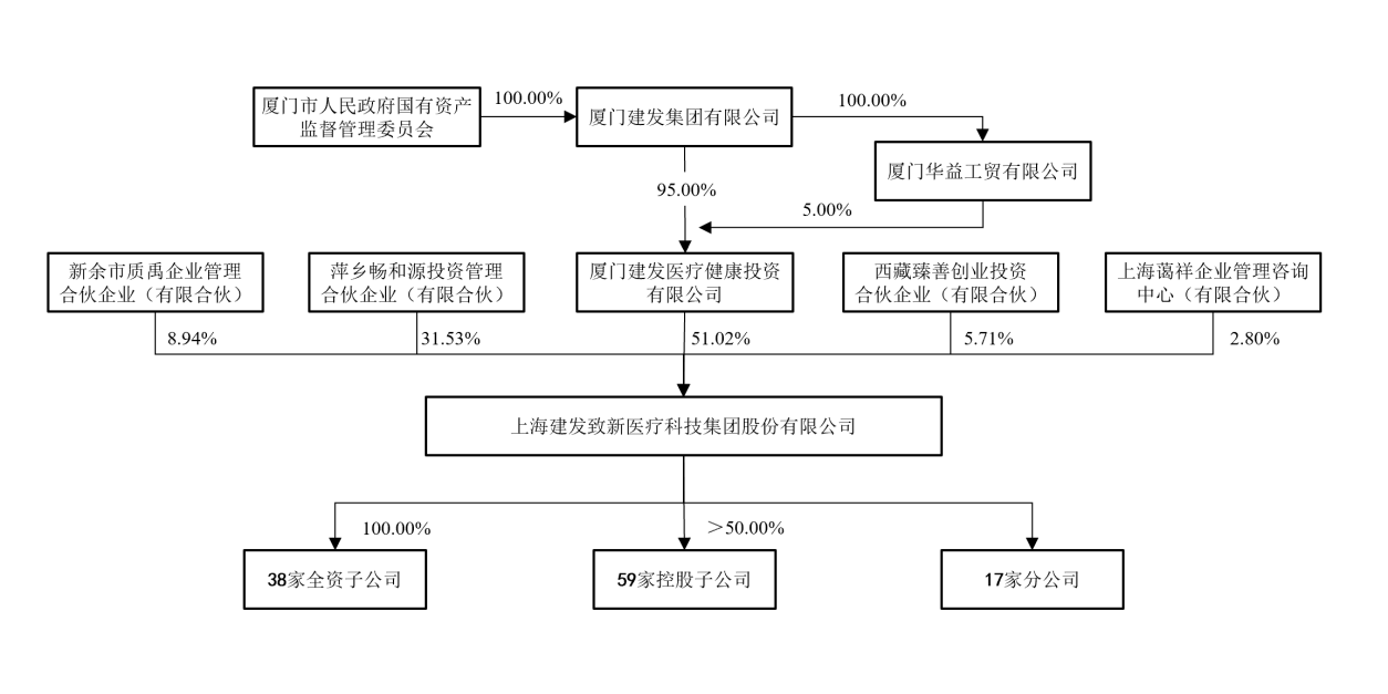 建发致新依托建发集团。招股书显示,建发集团直接及间接持有厦门建发医疗健康投资有限公司100%股权,为建发致新间接控股股东。