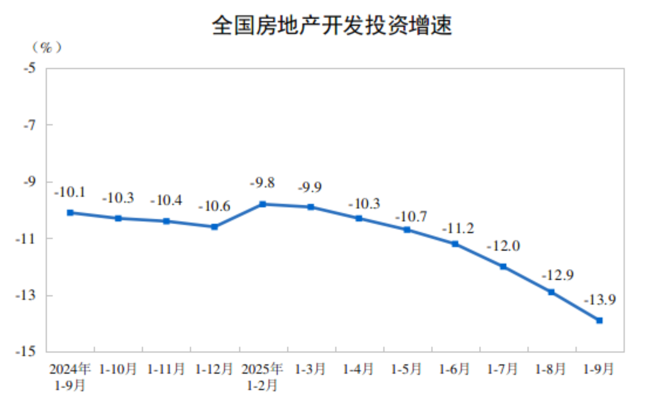 前9个月房地产开发投资降幅仍在扩大。据国家统计局数据,1-9月,全国房地产开发投资约6.77万亿元,同比下降13.9%。其中,住宅投资5.20万亿元,下降12.9%。