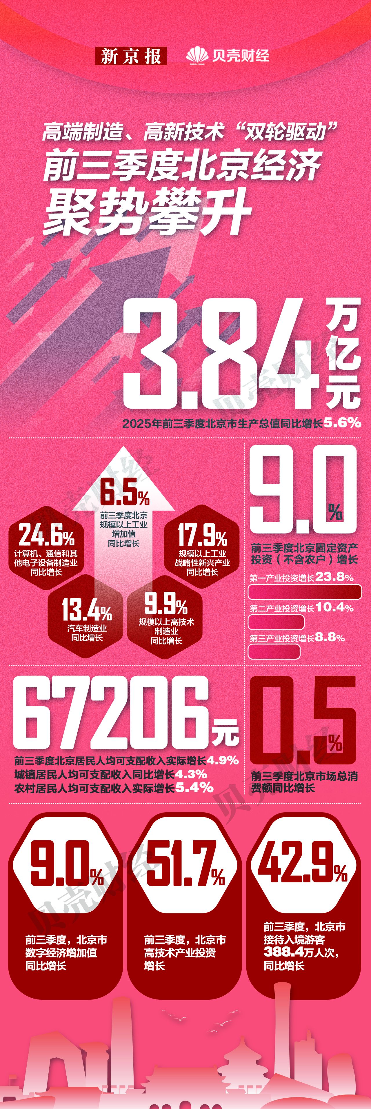 10月22日,北京市统计局发布前三季度全市经济运行数据。