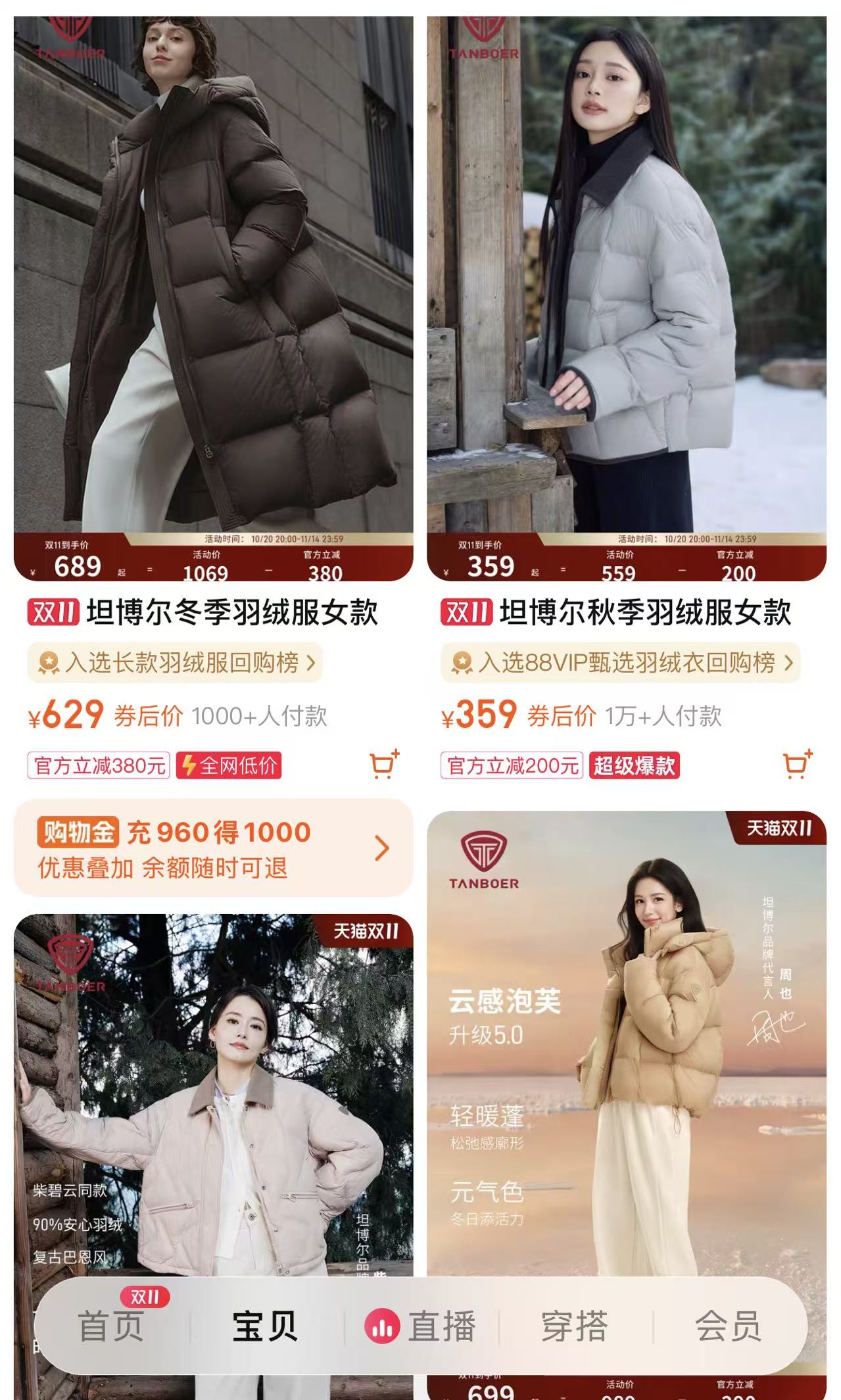 新京报贝壳财经记者在品牌天猫旗舰店发现,坦博尔目前售价最高的羽绒服为3699元(“双十一”券后价为2899元),目前并无销售量数据。另外,券后价为1999元的羽绒服,显示的销售量也为两位数,而其双11期间热销产品价格主要集中在200元-650元,显示的销售量均在三位数至四位数。