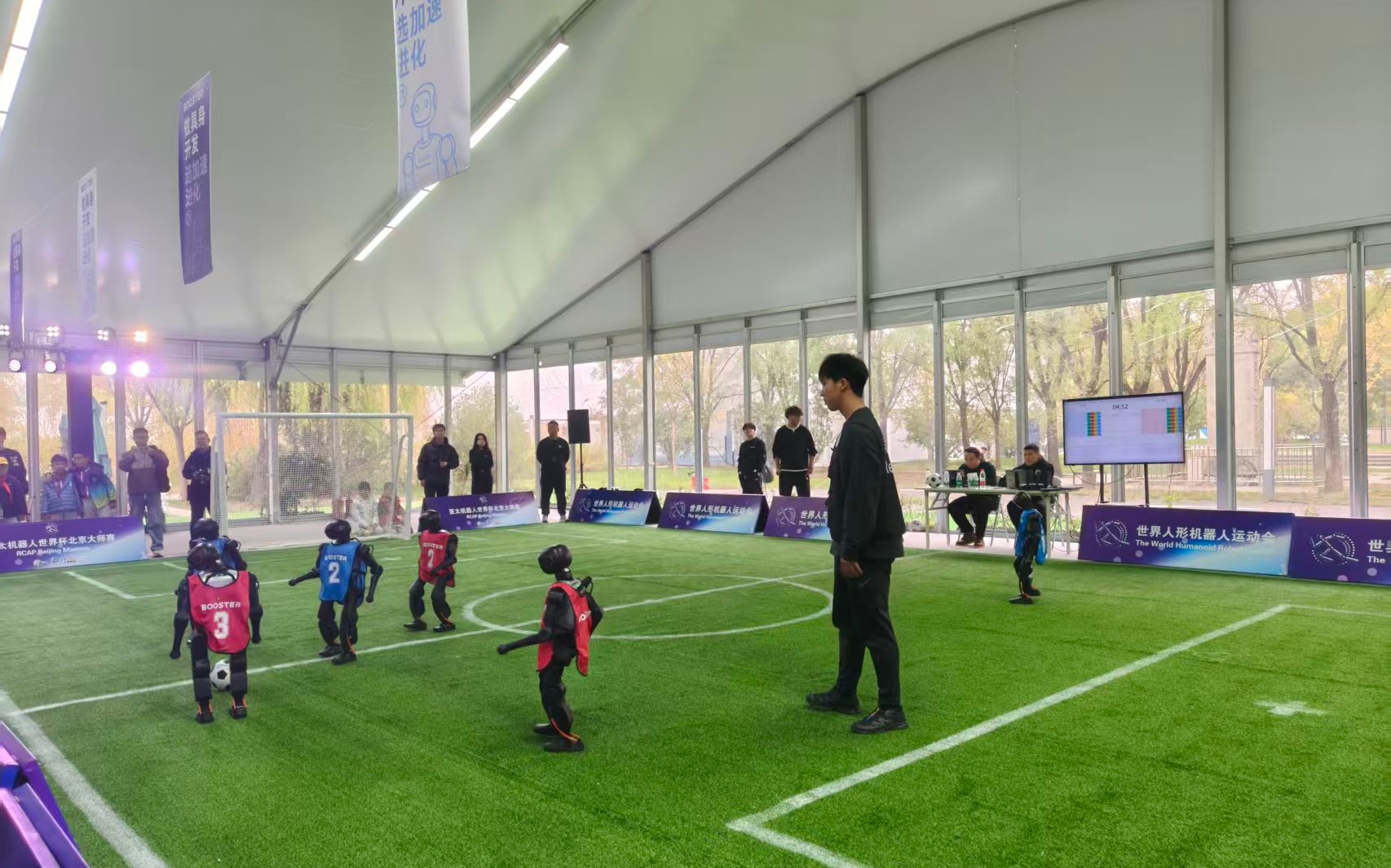 Booster K1正在进行足球比赛展示。新京报贝壳财经记者韦博雅 摄