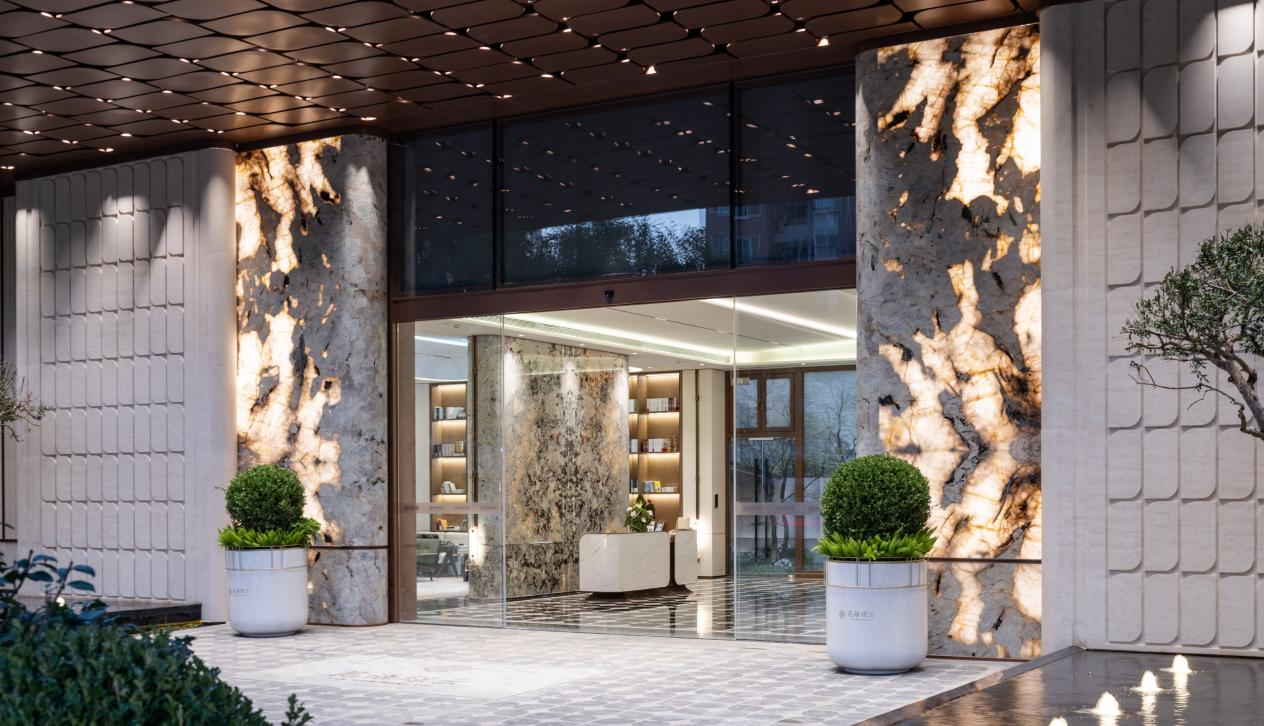 花语璟云大门以及邻里中心采用多种稀有石材。