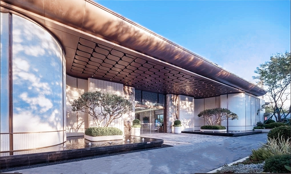 这座大门以约55米的奢阔尺度,构筑出恢宏的归家气象。为追求历久弥新的品质,项目团队远赴巴西、保加利亚等地,精挑细选优质天然石材,并运用七种不同精细工艺进行手工打磨,于一石一缝之间,尽显对建筑品质的执着坚守与匠心追求。