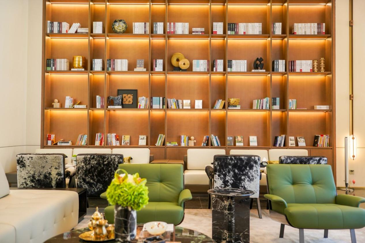 走进大门,我们看到的是奢华酒店式大堂的邻里中心,以及4.65米挑空带来的豁然开朗。书香休憩区,以柔和的木饰面、温暖的灯光,营造出图书馆般的静谧。在这里,业主可随手抽取一本杂志,蜷在角落静静小憩,等候家人下楼同行;或是结束一天的忙碌后,暂别外界的喧嚣,在此冥想片刻,让疲惫在书香与柔光中悄然消散。