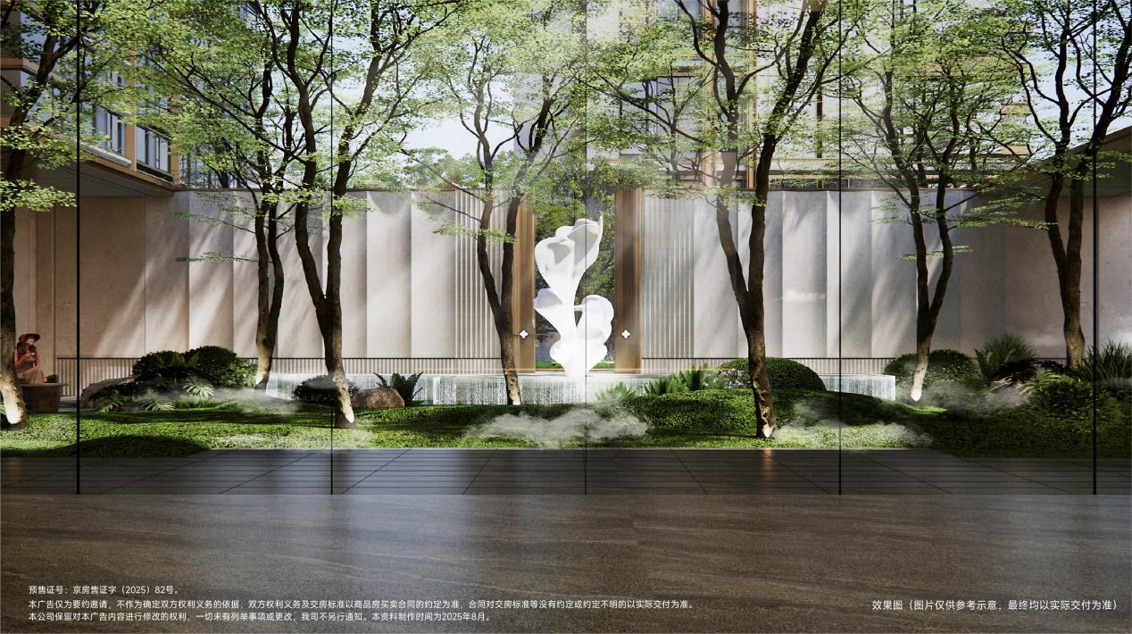 园林更是把“逛公园”变成了日常。以“一城梨花七境人生”为主题,从酒店式大堂进门,先经过梨花雕塑水景,再到阳光草坪和景观会客厅,最后沿着森林步道回家,每天上下班的路,都成了一场治愈的散步。