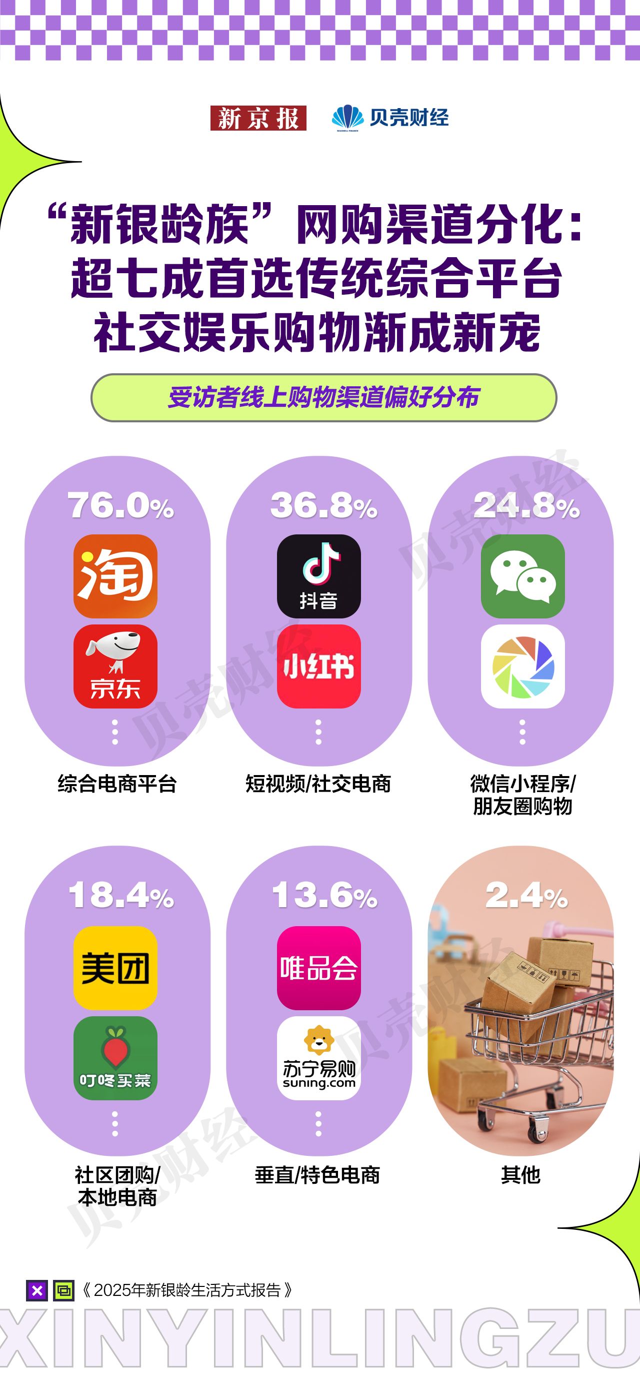传统综合电商平台仍是主阵地,占比76%,界面清晰、流程熟悉、客服响应快等“老朋友式”的体验让他们更有安全感。