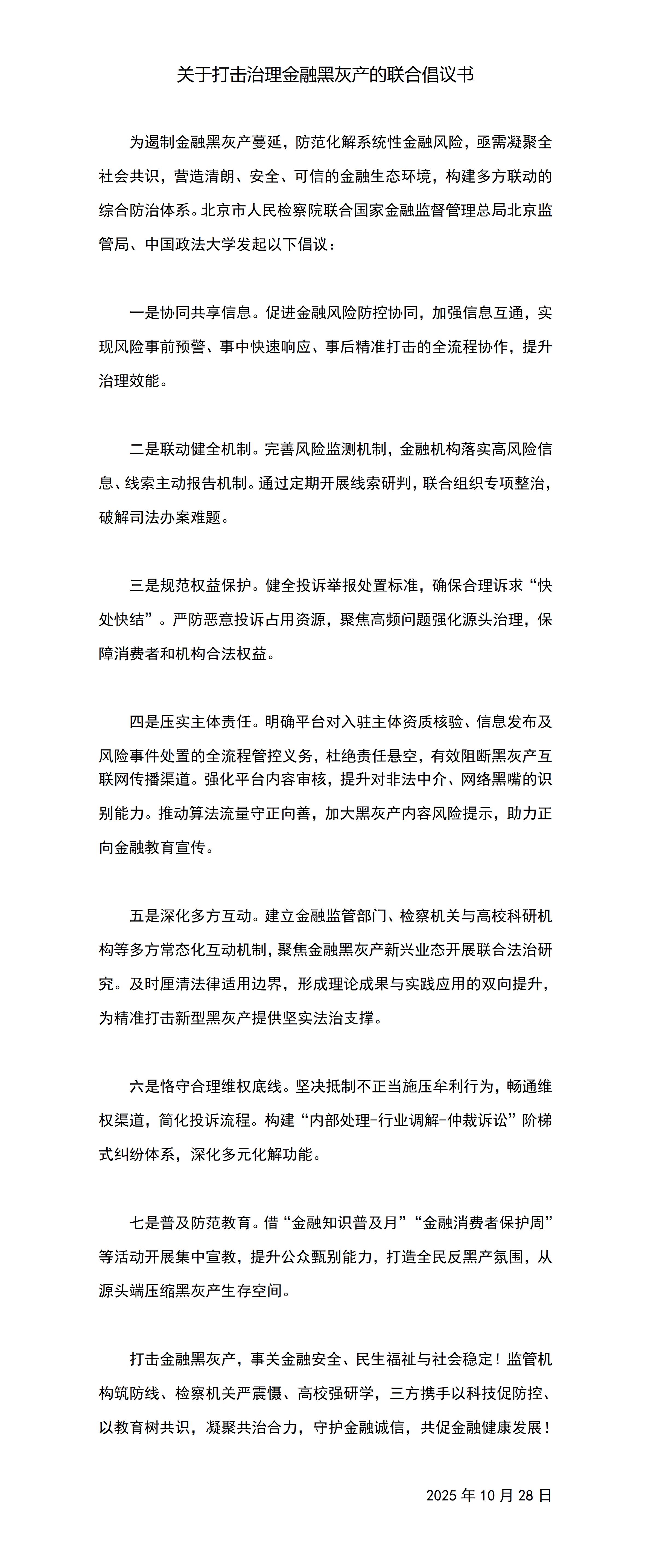 图/《关于打击治理金融黑灰产的联合倡议书》全文(新京报贝壳财经记者根据北京金融监管局提供的相关信息制图)