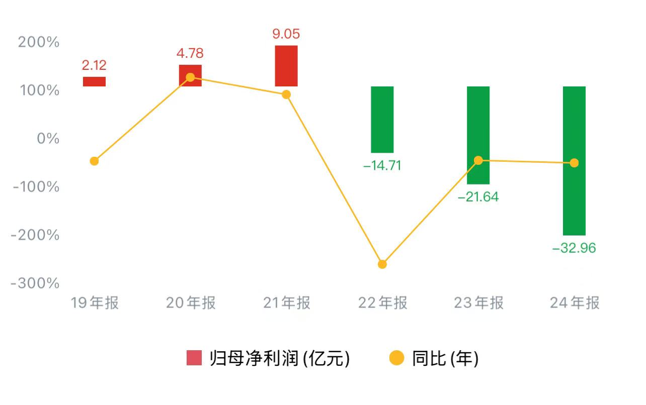 康佳集团2019年-2024年净利润走势。来源万得截图