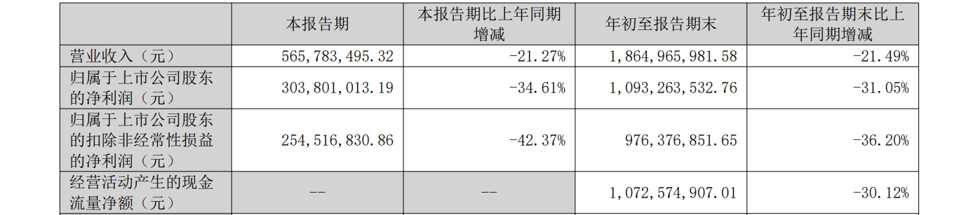 前三季度净利润下滑31.05%,销售费用增至2.31亿元