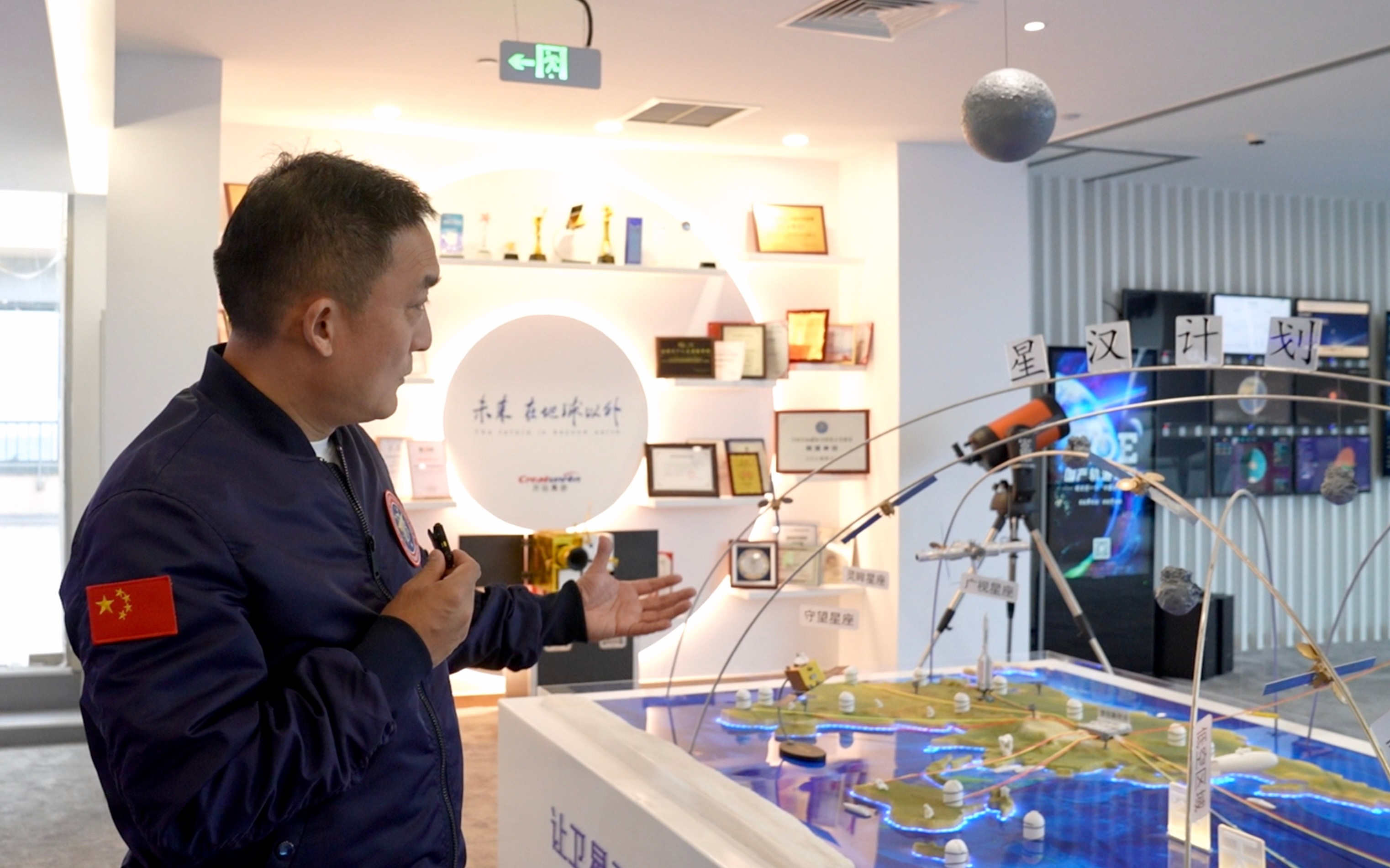 在展厅中央的操作台前,亢瑞卿现场演示ADS太空数据系统的预警功能。屏幕上,两颗卫星的轨道线即将交汇,系统瞬间发出橙色警报,自动生成规避方案。