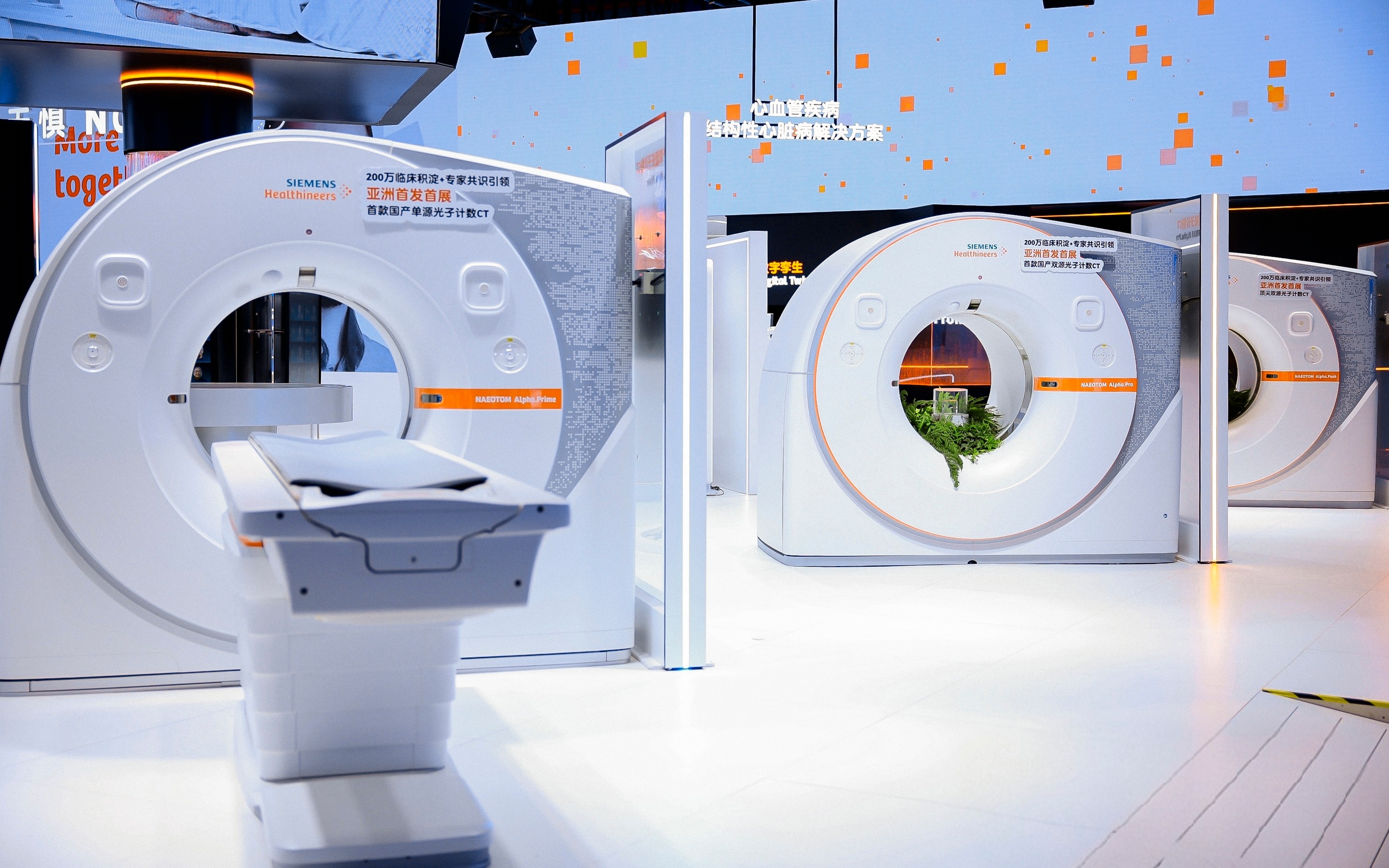 本届进博会上,已完成合并的西门子医疗与瓦里安共同聚焦肝癌、前列腺癌、肺癌、乳腺癌及宫颈癌等高发癌症,重点展示包括全新极速能谱血管造影系统ARTIS icono ceiling Xpand、SmART智能自适应放疗解决方案以及Biograph Vision Quadra极光2.0 PET/CT等在内的多款重磅产品。