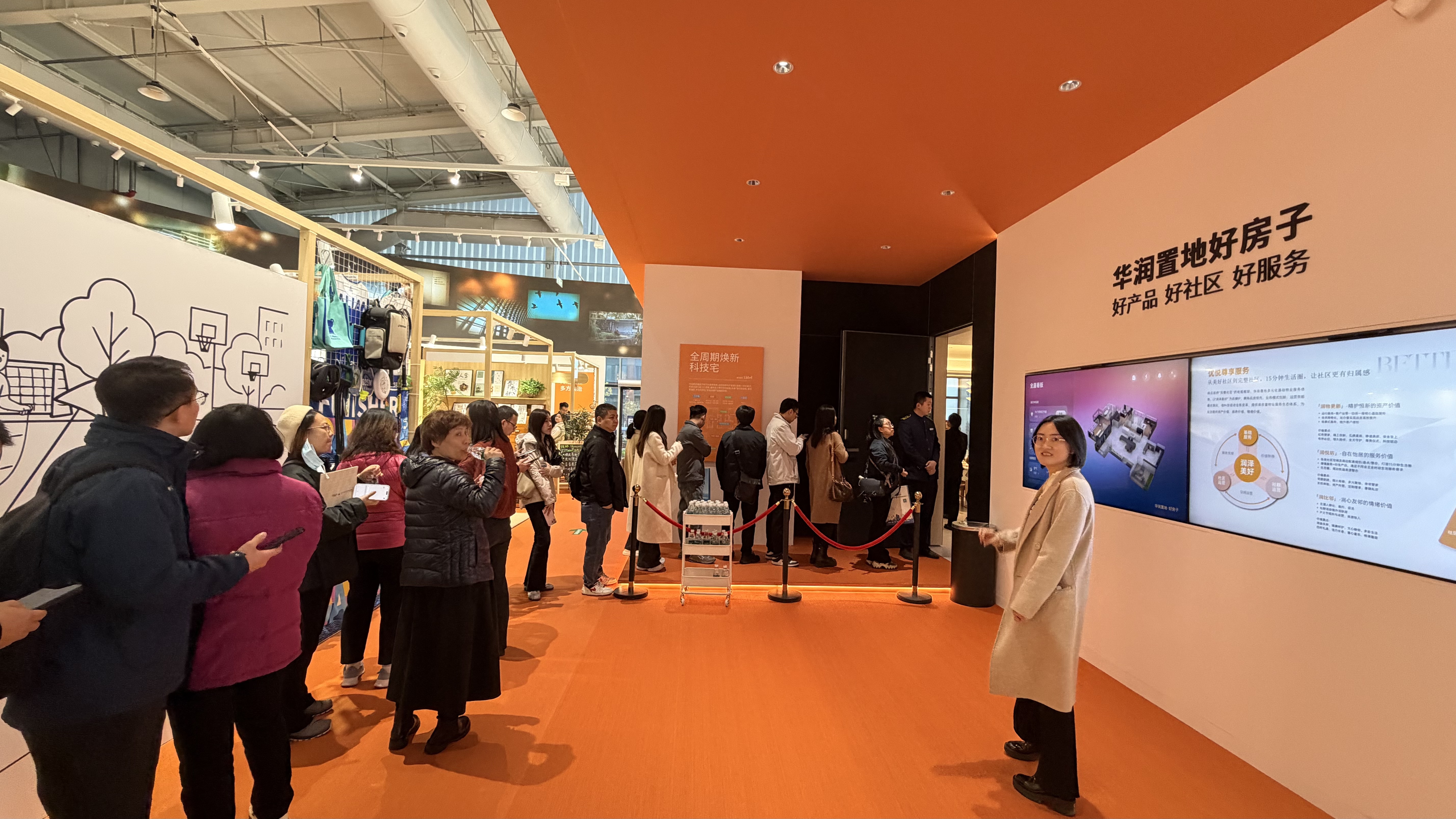 “好房子科技展”开幕首日,华润置地全周期焕新科技宅主题样板间门外等候的观众排起了长队。图/企业供图