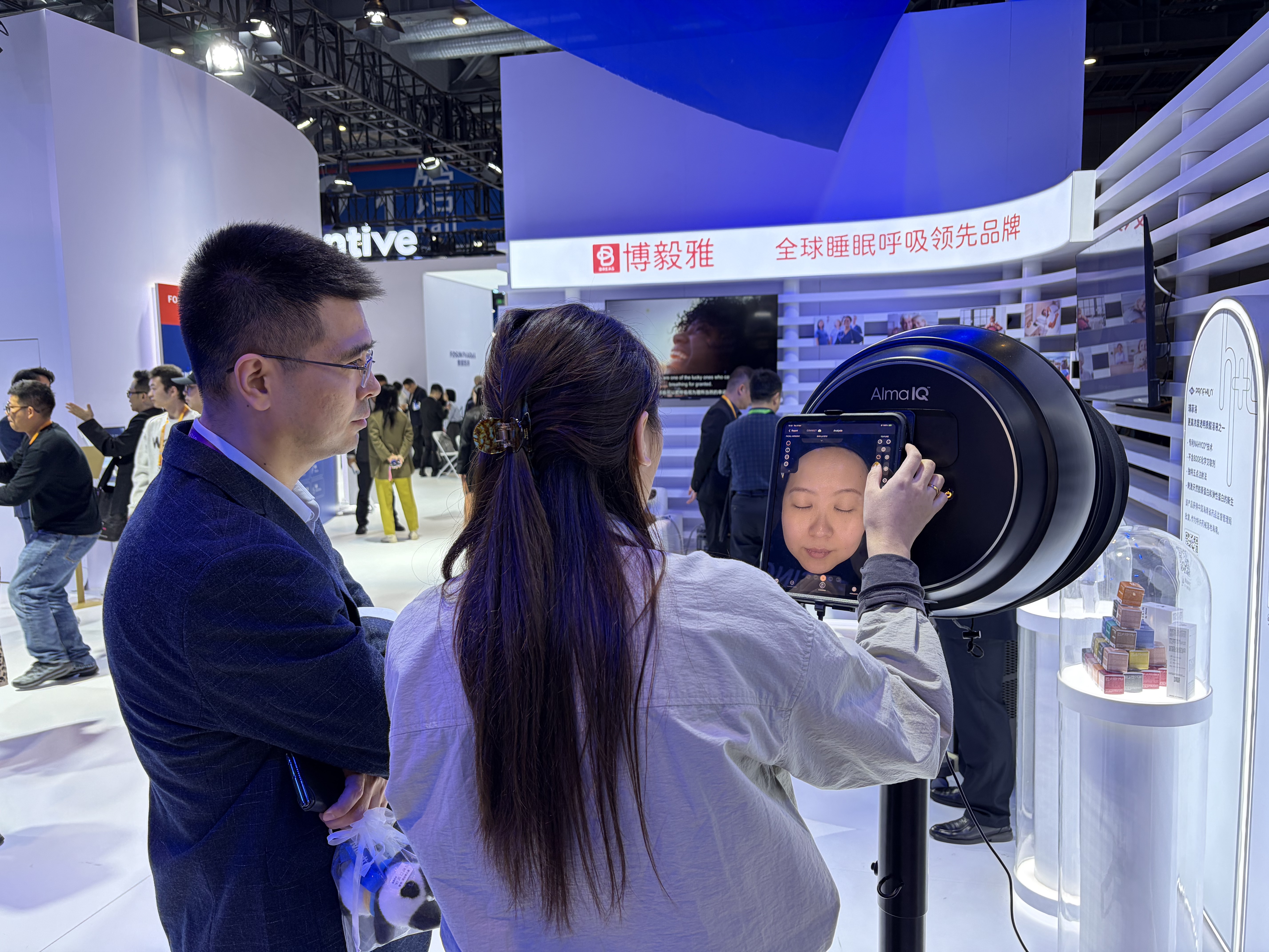 工作人员正在展示Alma IQ产品操作。图/新京报记者 王卡拉 摄