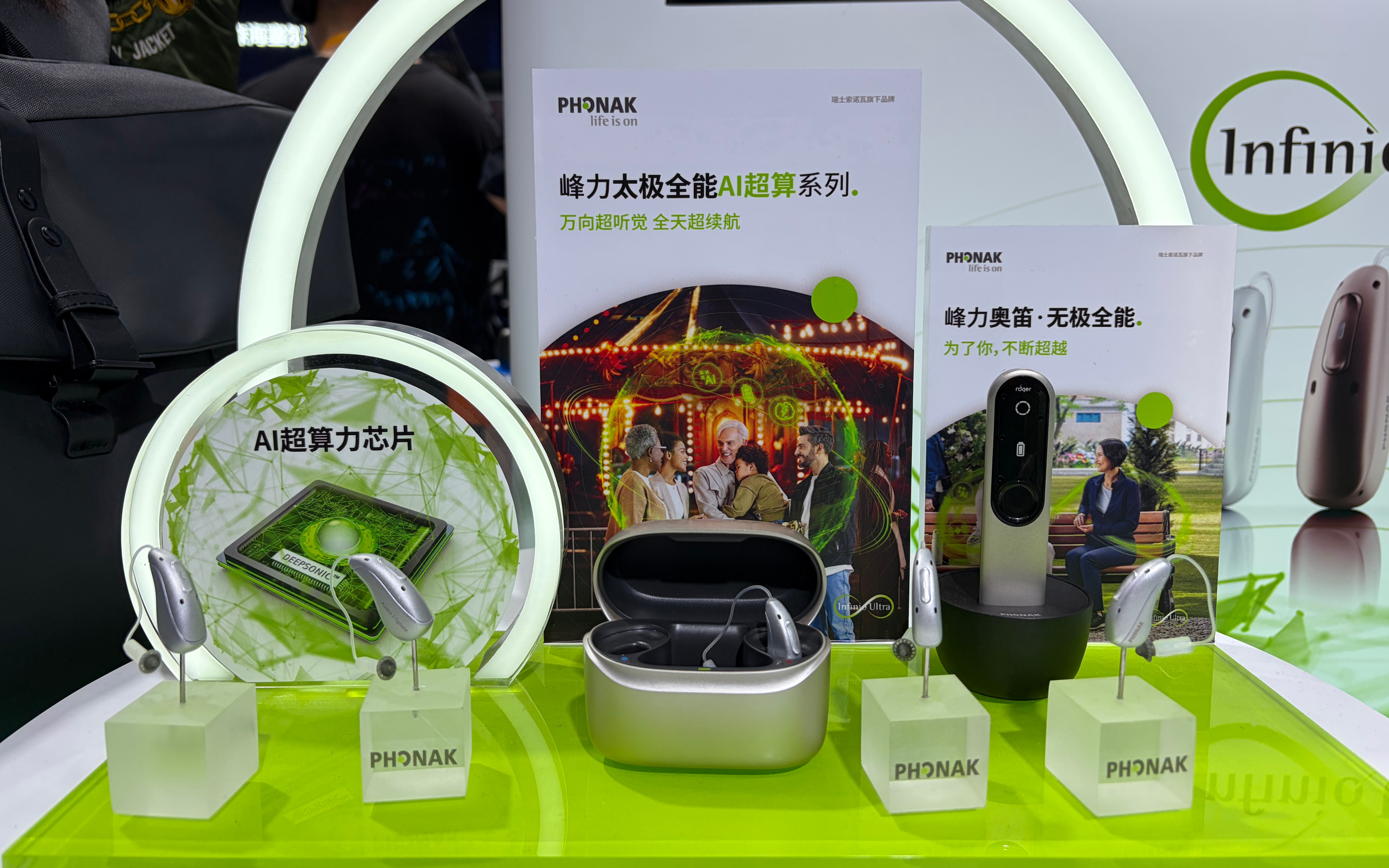 索诺瓦集团则带来了峰力AI人工智能太极全能系列助听器亚洲首展。该系列产品实现了超响应ERA芯片和超算力Deepsonic芯片的“双芯协同”,并搭载深度神经网络DNN的超强听觉认知声音处理算法,成为业内唯一具备实时AI处理的双芯片助听器。该设备能够模仿人脑的听觉认知过程,自动识别不同场景并智能切换,并在极端嘈杂的环境中实现万向言语声音处理,从各个方向精准剥离噪声,聚焦于言语声,将语音理解力提升50%,聆听疲劳感降低37%。同时,内置中文言语处理器3.0,特别针对中文声调与发音特点进行深度优化,使对话识别更精准。
