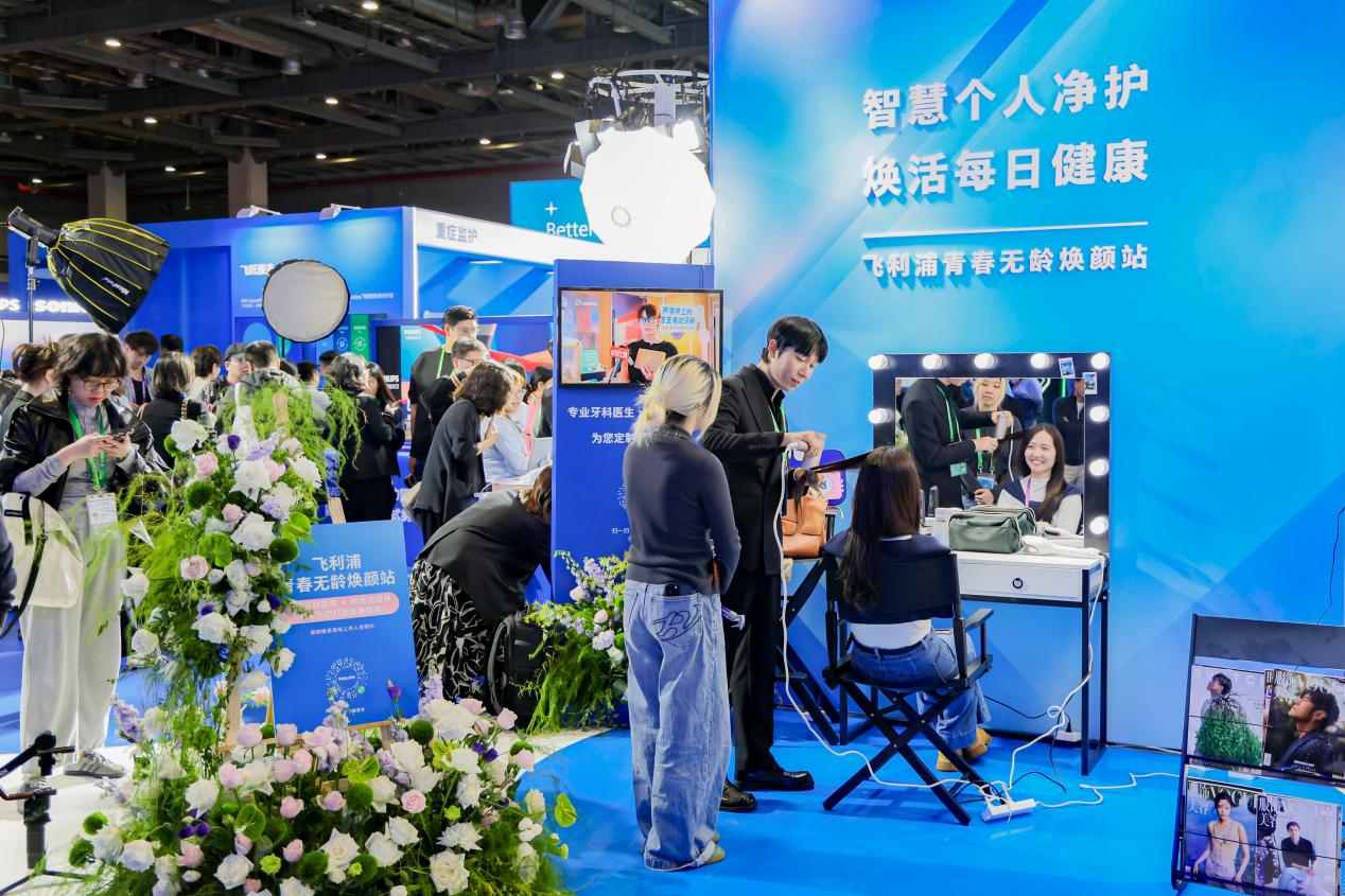 在第八届进博会飞利浦个护展区,“青春无龄焕颜站”互动体验区始终保持高人气,体验台前不断有观众驻足,通过口腔健康检测、肌肤剃护体验、头皮吹护对比等沉浸式环节,亲身感受“净护合一”科技如何解决日常护理痛点,现场反馈热烈。