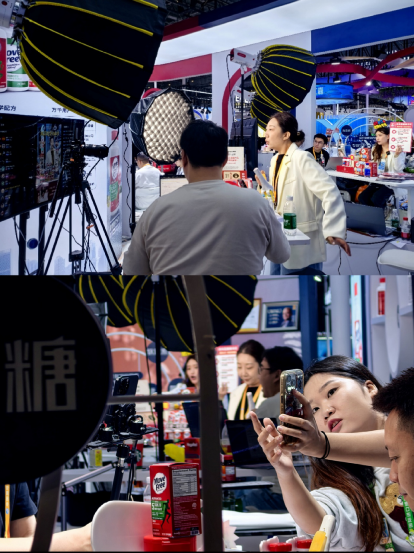 第八届进博会现场随处可见“店播”,线上线下联动。新京报贝壳财经记者俞金旻 摄