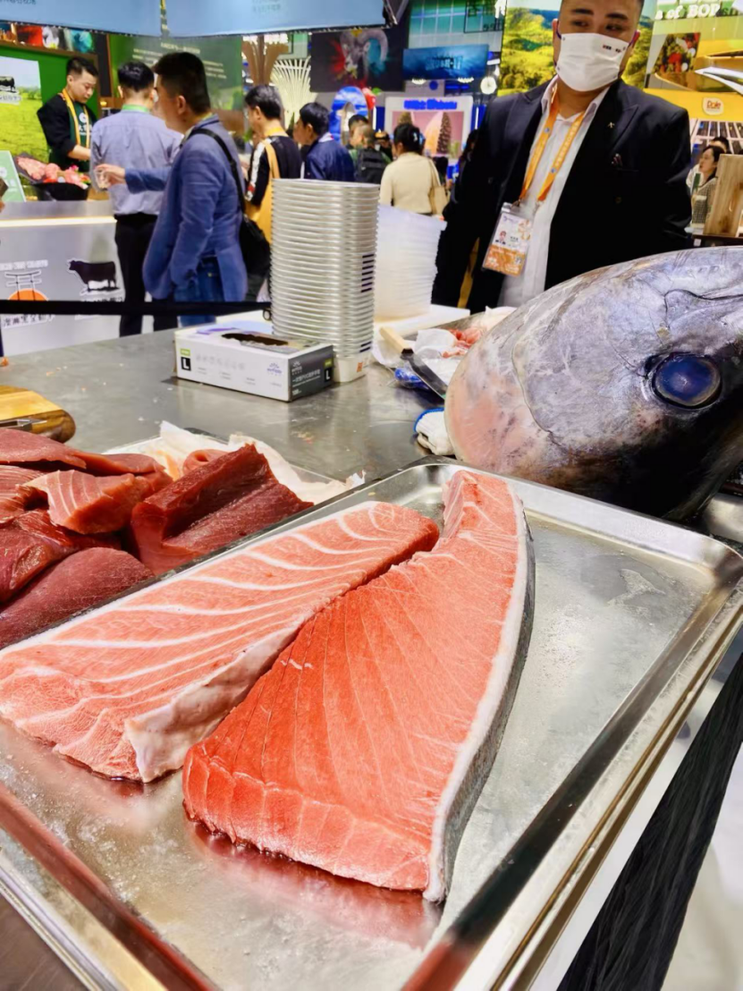 进博会现场提供金枪鱼试吃。新京报贝壳财经记者林子 摄