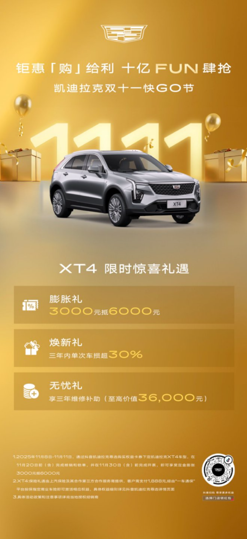 双十一来临,一些车企选择用诚意价格与用户互动。作为豪华品牌的凯迪拉克在双十一为其豪华中型SUV XT4打出全款一口价15.99万起的诚意价格。这款车于2025年5月25日焕新上市,将百年豪华底蕴与先锋科技深度融合,以“15万最强豪华SUV”的产品实力重塑市场格局。