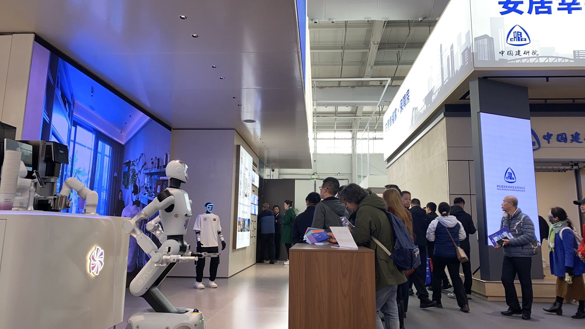 在此次新青年好房子样板间中,率先映入眼帘的是咖啡机器人自助服务体验,线上下单、机器臂制作,再由轮足具身机器人端送到客户手中,全程“丝滑”服务。人形机器人全程导览讲解,带领参观者走至室内,只需呼叫“联小智”,室内全屋灯光、家电以及可变空间等全部可自动开启,科技感十足。