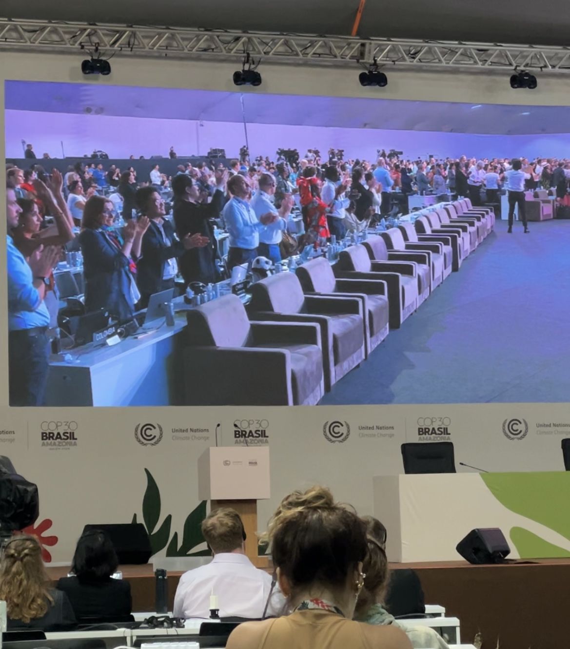闭幕会议上,公正转型工作方案(JTWP)决议草案通过,全体起立,会场内响起约一分半钟的掌声,这项议题的突破是COP30另一大核心亮点,终版方案文本中采纳了发展中国家的诉求,决定设立公正转型机制。其核心是确保全球向低碳经济转型的过程是公平且包容的,不会让任何一个人掉队。它旨在通过多边合作,帮助各国,特别是发展中国家,规划和实施公平的气候行动。