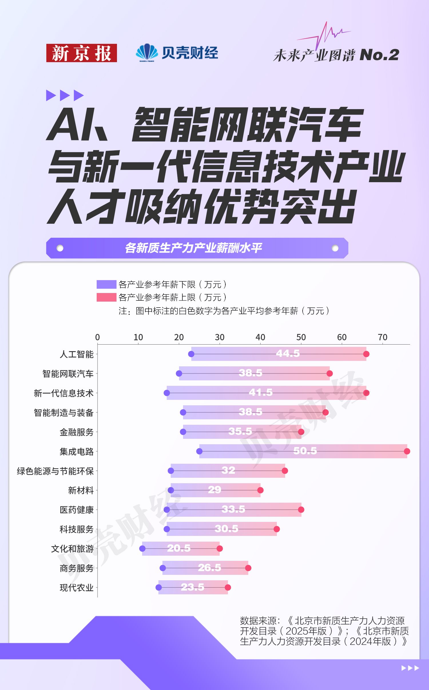 哪些快速增长的重点领域最缺人才?新京报贝壳财经记者全面梳理这份目录,透视北京新质生产力发展的人才密码:作为“创新大脑”的海淀和企业数量最多的朝阳,共同构成北京人才最密集、需求紧迫的两大新质生产力核心区;同时,北京人才市场资源进一步向关键环节、尖端人才倾斜,岗位招聘信息越发精准聚焦。而人工智能赛道的人才需求则走向多元化发展,从前端研发延伸至产品、用户体验、商业化链路等下游环节,“AI+”正在成为跨行业的共同语言,也向更多社科与交叉专业敞开了大门。