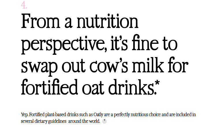 Oatly官网宣称,“从营养角度看,用营养强化燕麦饮代替牛奶是可以的”。