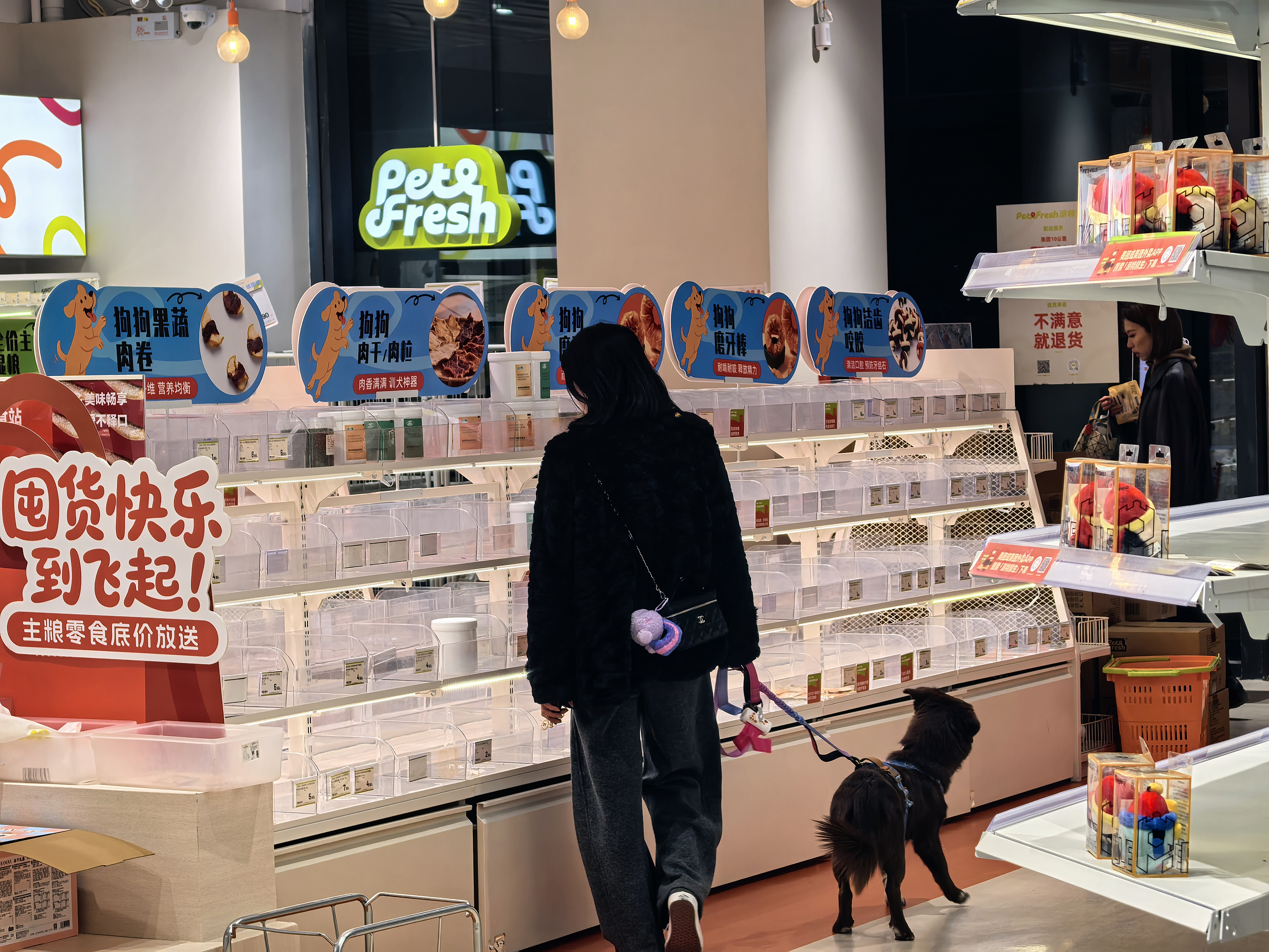 11月25日,派特鲜生首店上海海粟文化广场店内还有消费者携宠前来消费。新京报贝壳财经记者俞金旻 摄
