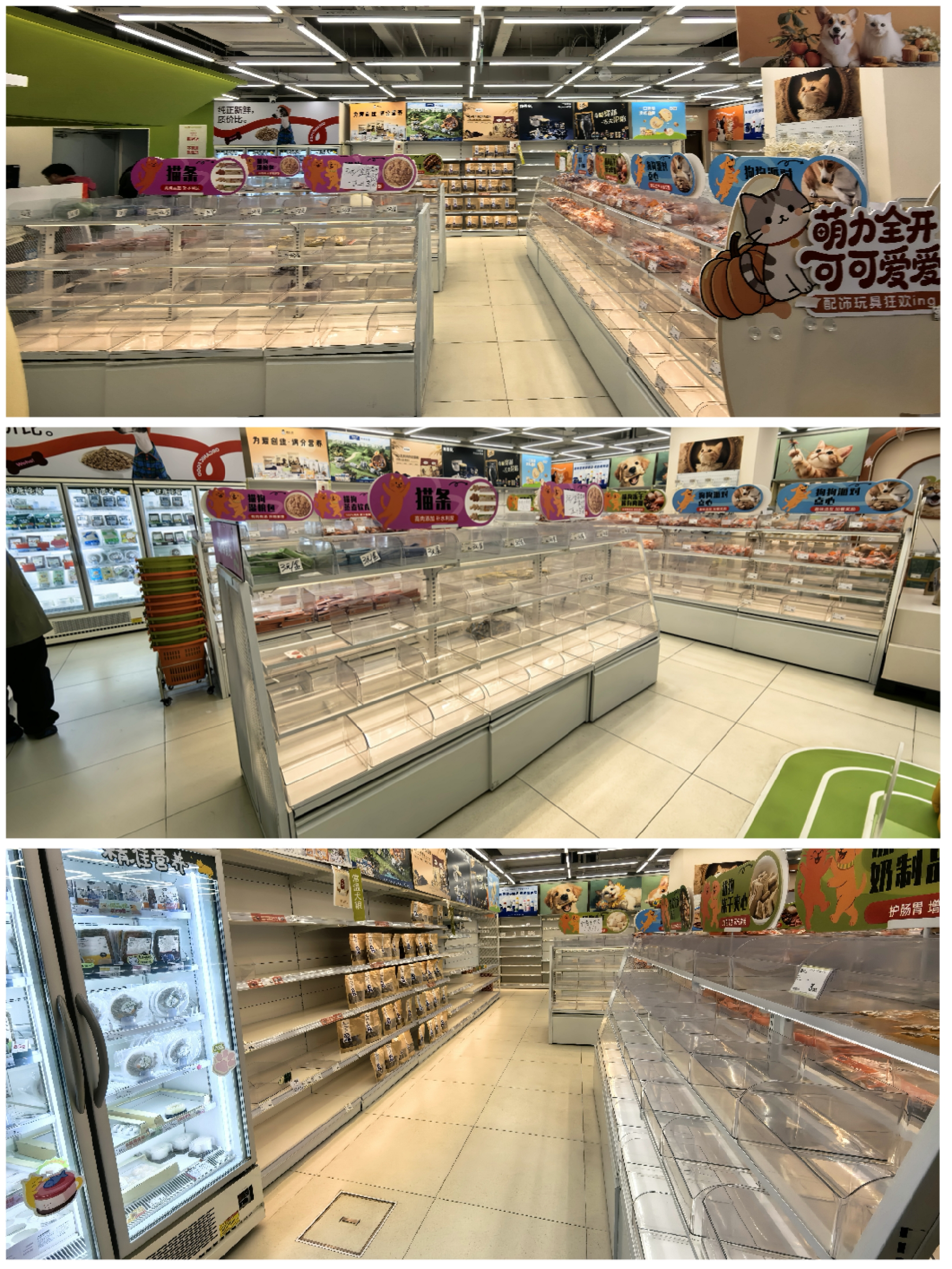11月26日,“宠天天”门店内货架比较空,都是“派特鲜生”存货为主。新京报贝壳财经记者俞金旻 摄