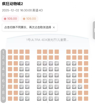 截至12月3日15时,上海的ULTRA 4DX厅,本周末甚至下周末的场次,几乎全部售罄。即便是周末凌晨放映的场次,也仅剩边角处的几个空座。