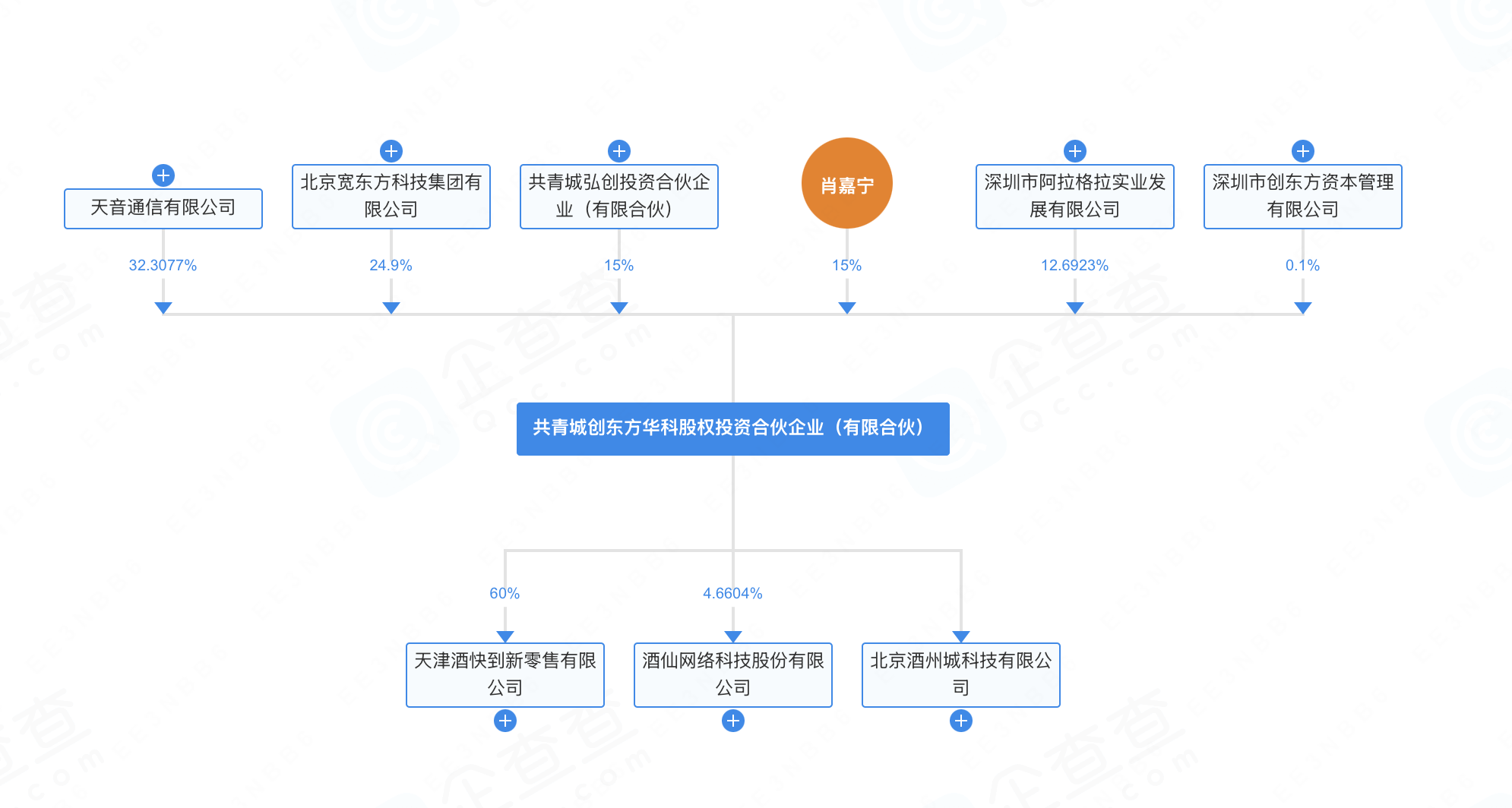 此外,据企查查股权穿透图,该基金此前已对外投资了酒仙网络科技股份有限公司(持股约4.66%)、天津酒快到新零售有限公司(持股60%),以及北京酒州城科技有限公司。这也意味着,该基金在接盘酒便利之前,已有相关酒类连锁运营经验,这也被业内认为是“同业整合”。