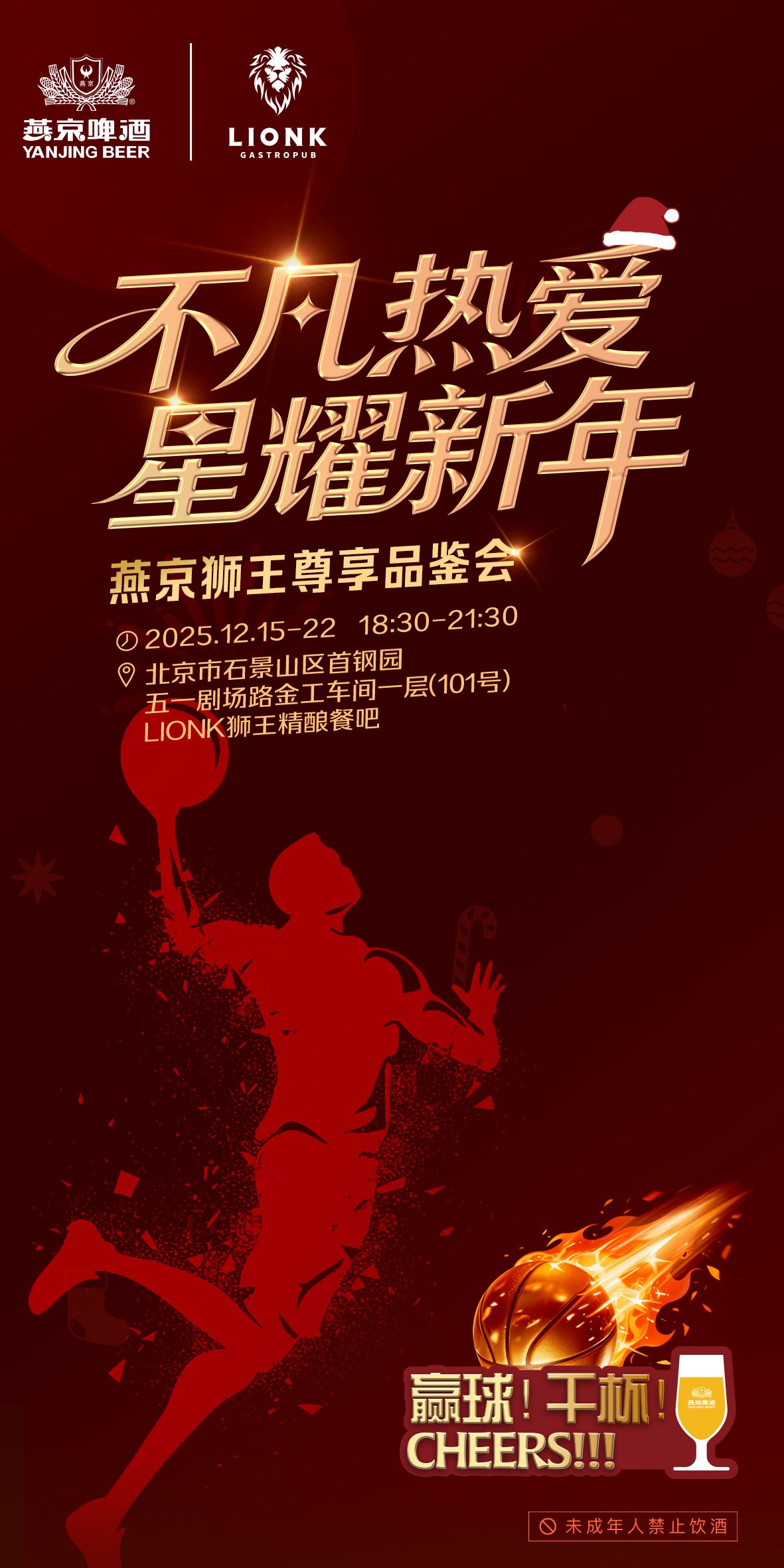 “不凡热爱 星耀新年”——燕京狮王尊享品鉴会将于12月15日至22日,每日18:30-21:30,在首钢园狮王餐吧举行。企业供图