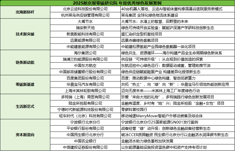 此外,还有云迹科技、多特瑞等企业的23个案例入围2025年度绿色发展案例的“优秀案例”,分列出海新标杆、技术新突破、链条新动能、零碳新基建、生活新范式、资本新流向六大类。