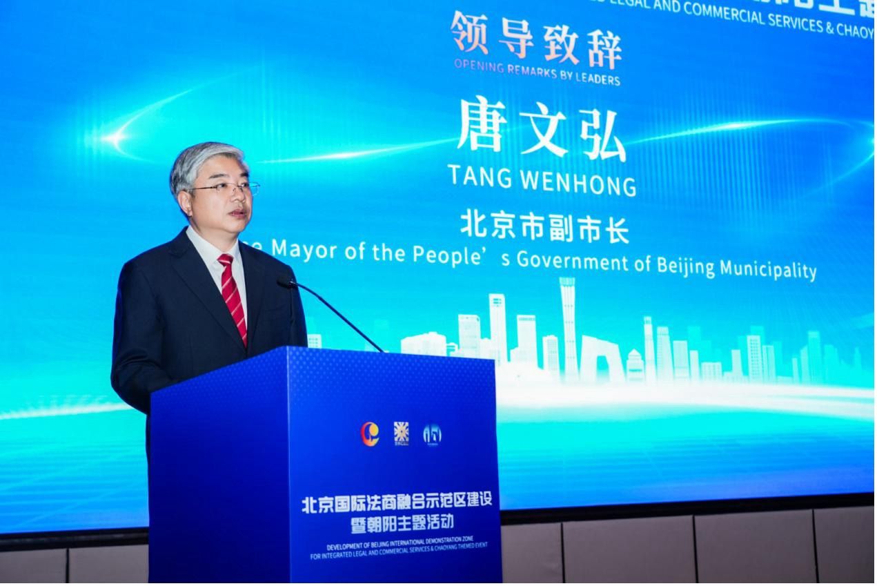 北京市人民政府副市长唐文弘在致辞中指出,建设北京国际法商融合示范区,是北京市委、市政府落实中共中央政府关于“加快发展现代服务业”“扩大制度型开放”“构建高水平社会主义市场经济体制”等一系列重大决策部署的关键举措。