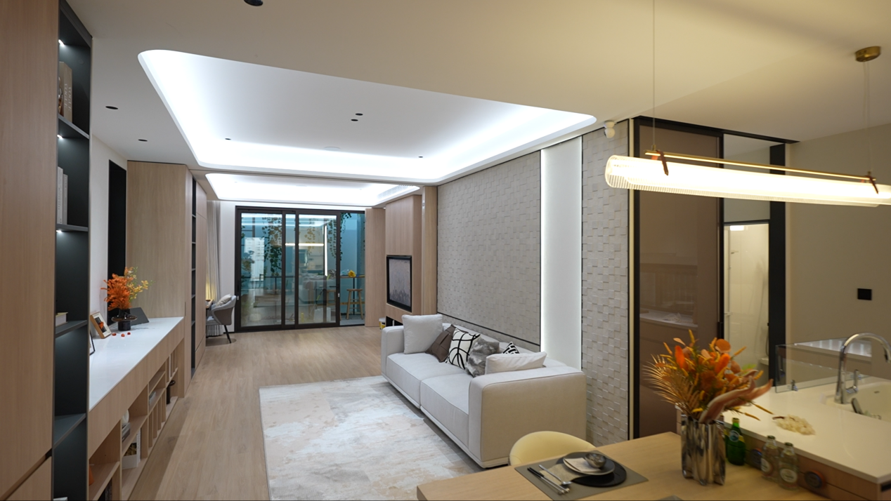 绍兴“四季园·瑞园”项目便是其中一个生动缩影。今年11月份举办的“好房子”科技展上,柔性空间“一宅一生”样板间将绍兴•瑞园“好房子”项目“搬到”北京。样板间采用以大空间结构体系与管线分离系统为基础的住宅产业体系,实现“主体、外围护、内装、设备管线”全产业升级,融合可持续居住的柔性可变设计与全屋智能,打破传统空间界限,实现“全空间多场景”自由切换,适配从单身到三口之家、老年陪伴等多元化家庭和家庭全生命周期不同阶段居住需求,实现人民群众“一宅一生”美好生活梦想落地。