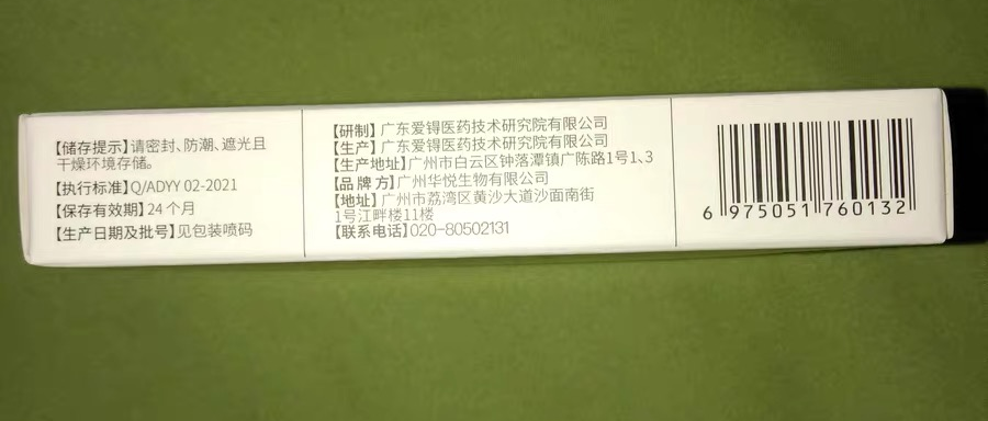 产品包装显示,该产品的生产企业为广东爱锝医药技术研究院有限公司,品牌方为广州华悦生物有限公司。天眼查显示,广东爱锝医药技术研究院有限公司的经营范围包含“医药技术研究、开发;消毒产品生产、销售”等项目,但其生产的“净化贴”形态与传统消毒剂差异较大。