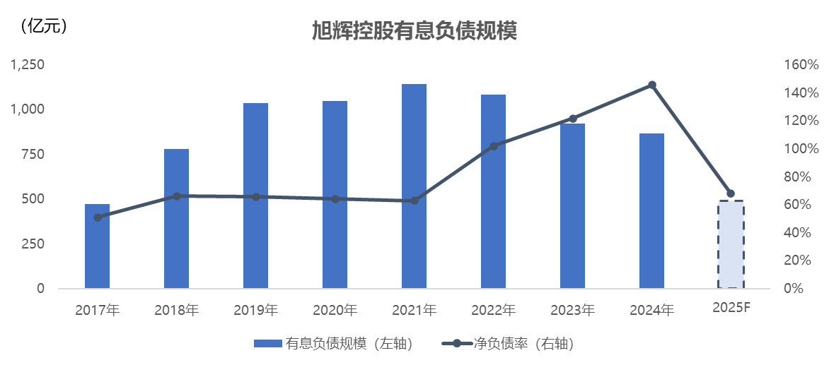 随着占有息负债规模超过70%的境内外信用债重组的陆续完成,旭辉控股的资本结构将得到大幅改善,公司有息负债总额预计将从2025年中期的842亿元进一步压降至500亿元左右,有息负债规模及净负债率有望回落至2017年的水平。此外,旭辉控股债务结构也由“短期高息”转向“长期低息”,财务成本大幅度下降,财务杠杆率回归至健康水平。