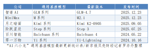 “小龙”的光环正在褪色,取而代之的是“基模五强”“AI四小强”。名号流转的背后,是生存逻辑的深刻变迁。曾经并肩的六家,如今已走上殊途:智谱与MiniMax在12月双双递交港交所招股书,“上岸”在即;月之暗面和阶跃星辰基础模型的发布停留在今年9月和7月,却在年底分别押注于深度思考与端侧模型;而零一万物与百川智能已悄然转身,放弃预训练通用模型,埋头扎进AI应用与垂直领域。