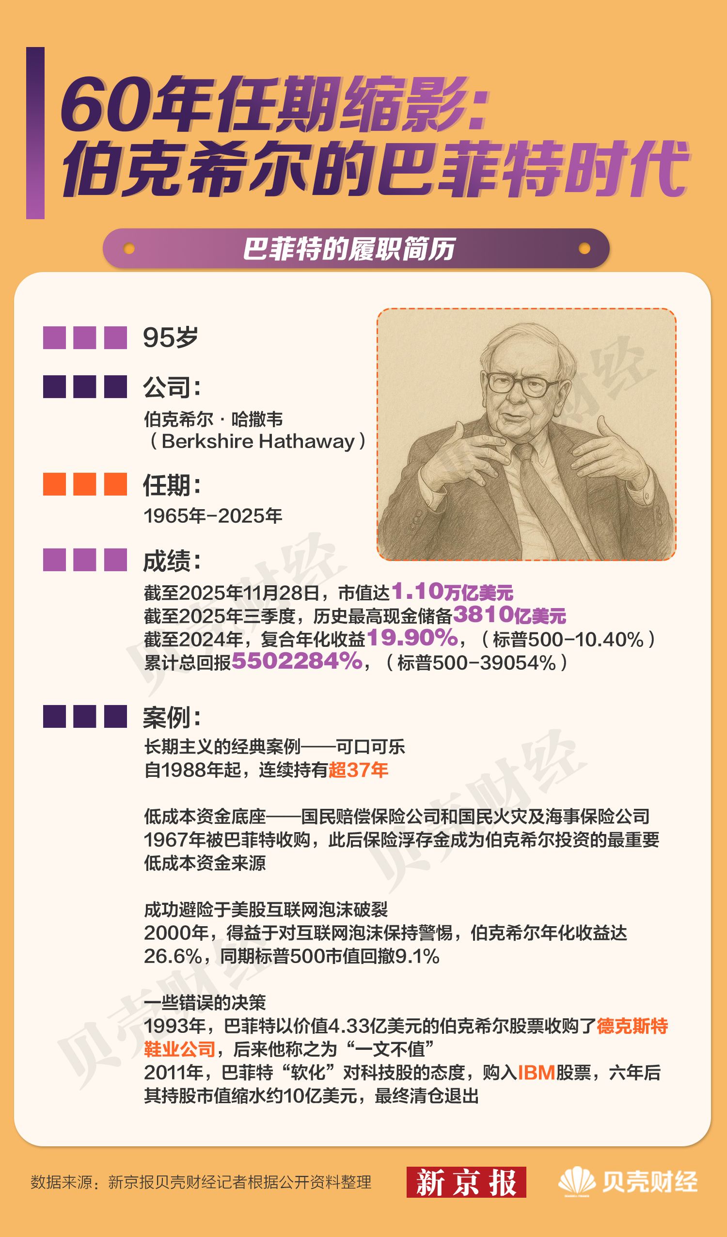 2025年12月31日,95岁的沃伦·巴菲特度过了他担任伯克希尔·哈撒韦(Berkshire Hathaway,以下简称“伯克希尔”)首席执行官的最后一个工作日,长达60年的传奇任期画上句号,副手格雷格·阿贝尔接棒。