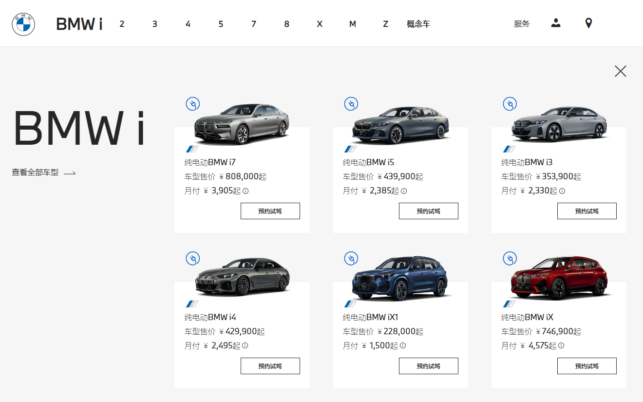 宝马部分车型最新价格。 官网截图