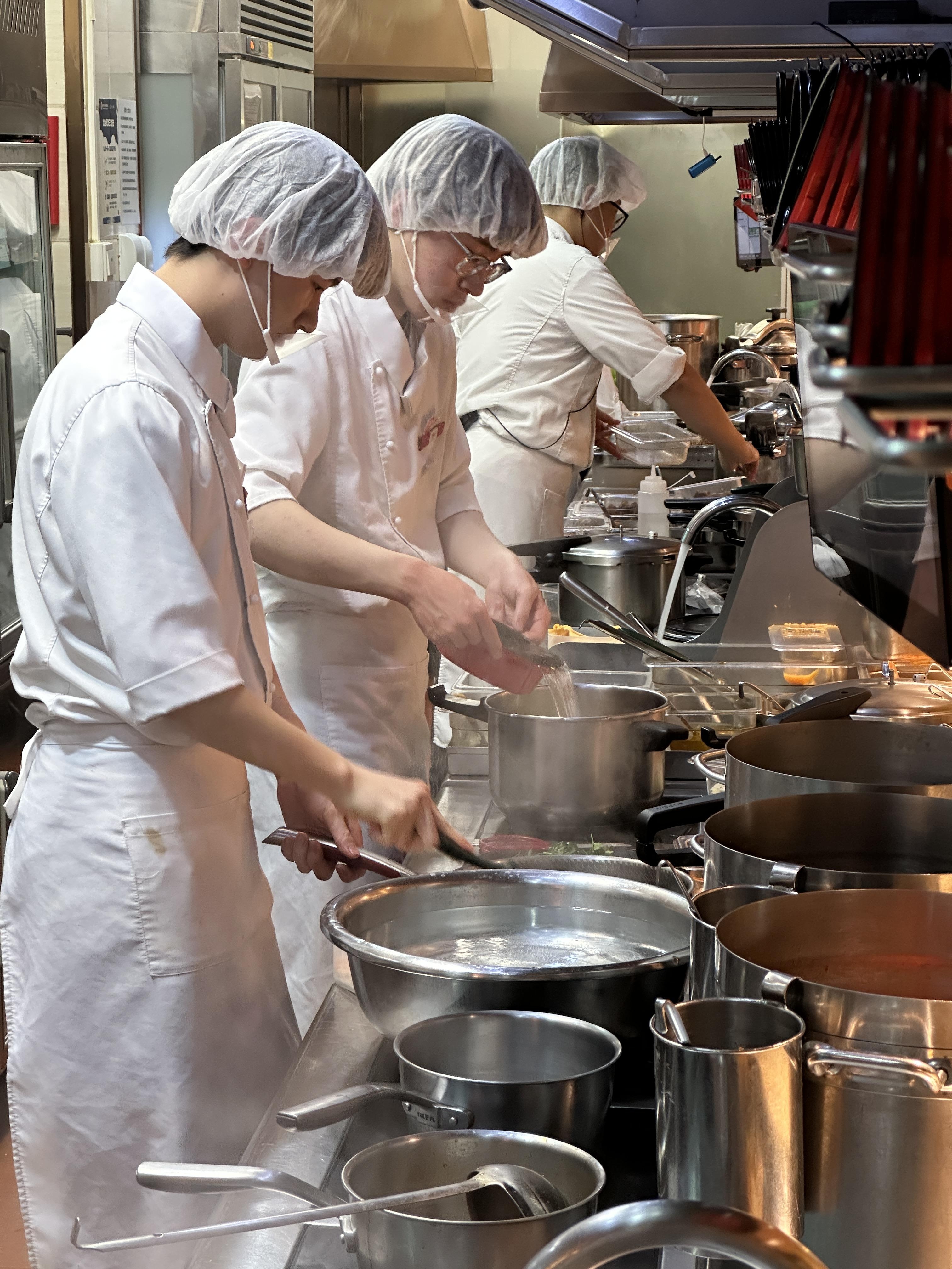 西贝首先对菜品制作流程动刀,核心是让“风味形成的核心环节回归门店”。十余道核心菜品完成现制化改造:儿童餐牛肉酱改为现炒、牛肉饼现做、猪排烩酸菜现切现炒。最直观的改变是羊肉串,从“中央厨房半成品”升级为“现切现穿现烤”,明档厨房里厨师的操作全程可见;鸡汤则放弃复热汤包模式,改为“早上6点点火,晚上10点熄火”的慢熬工艺,重新找回传统烹饪的烟火气。