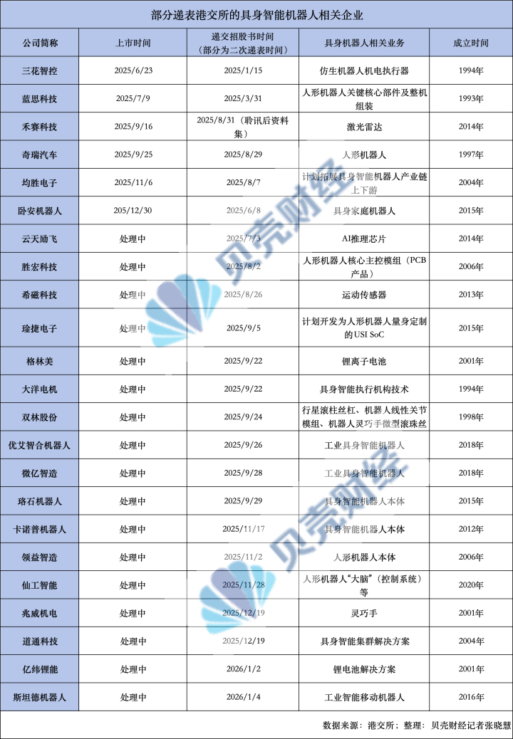 人形机器人产业链企业在港股排队上市的热潮始于2025年年中,2026年仍在延续。