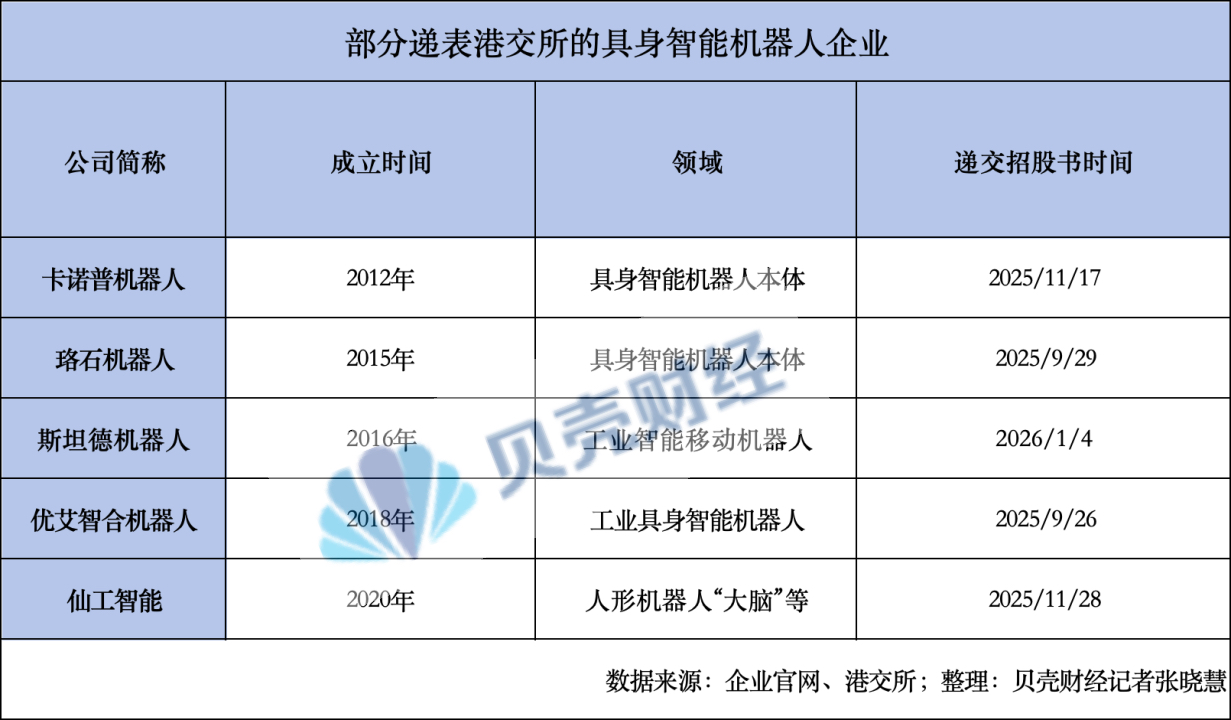 据新京报贝壳财经记者不完全统计,2025年,共有超过20家具身智能机器人上下游企业递表港交所,基本集中在下半年。除少数几家已经上市外,多数企业仍在等候。