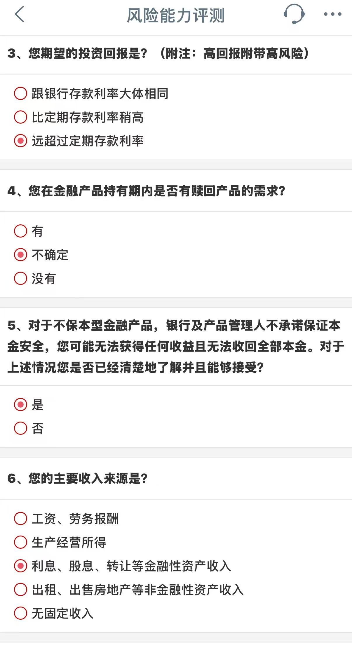 工商银行风险能力评测。工商银行App截图