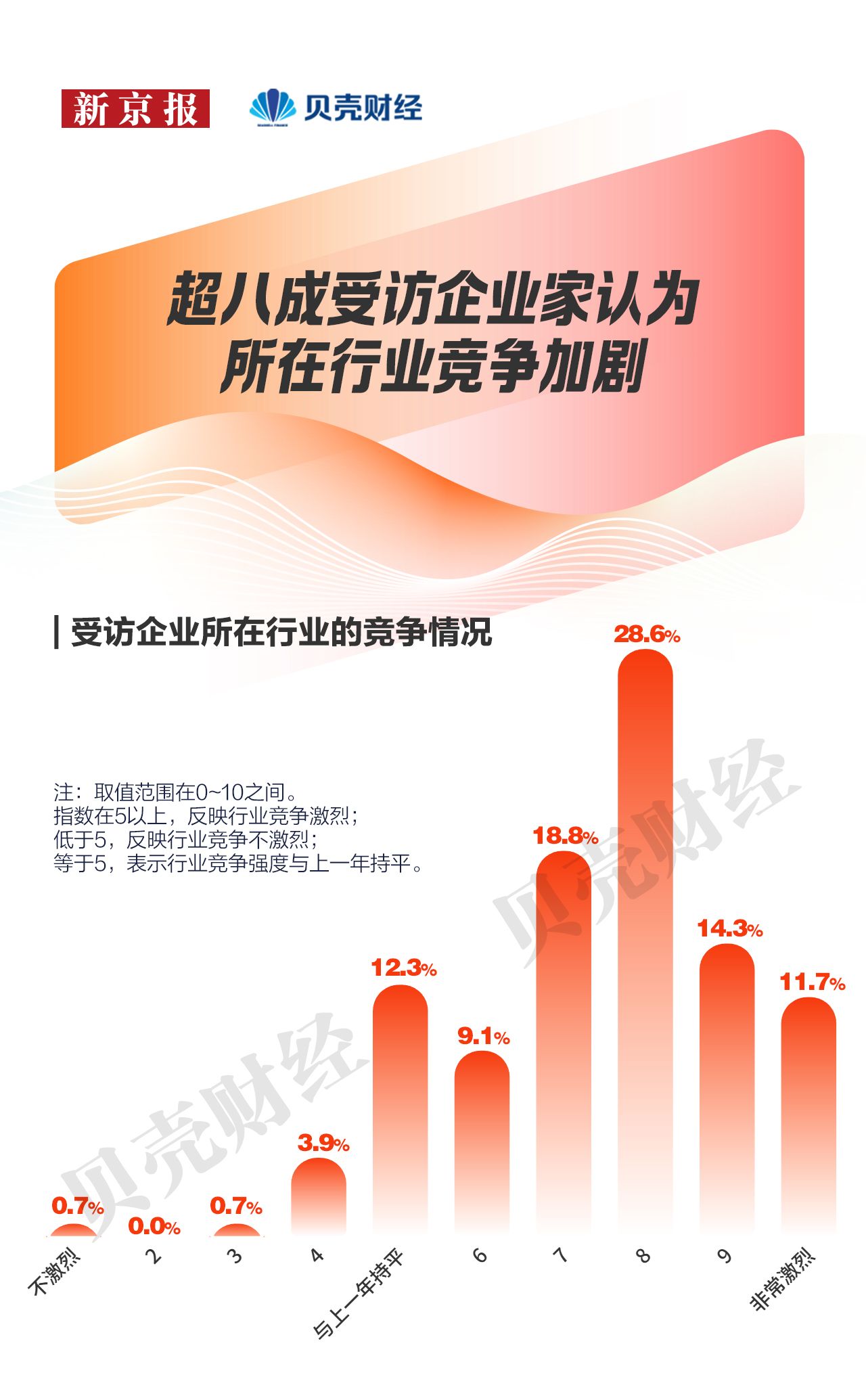 竞争加剧已成为受访企业的普遍共识。调研显示,2025年高达82.5%的受访企业认为所在行业竞争加剧(评分高于5),竞争程度评价整体维持高位。