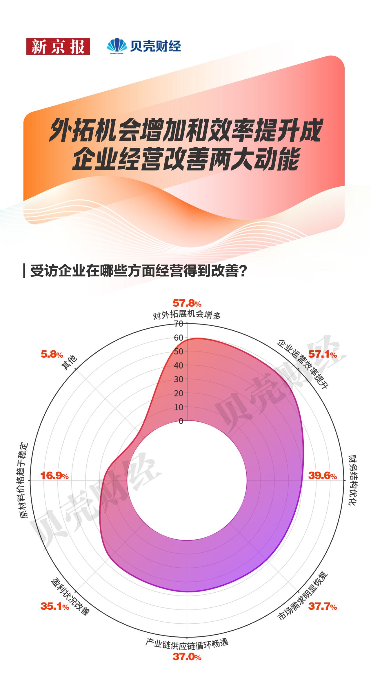 调研显示,对外拓展机会增多、企业运营效率提升成为助推企业经营向好的有力因素。在国内竞争加剧的背景下,通过开拓外部市场、拓展新的业务空间以及优化管理、提升运营效率来对冲增长压力,有助于企业实现经营上的稳步修复。此外,企业经营供需两端呈现边际改善,也为企业经营回暖提供了基础支撑。