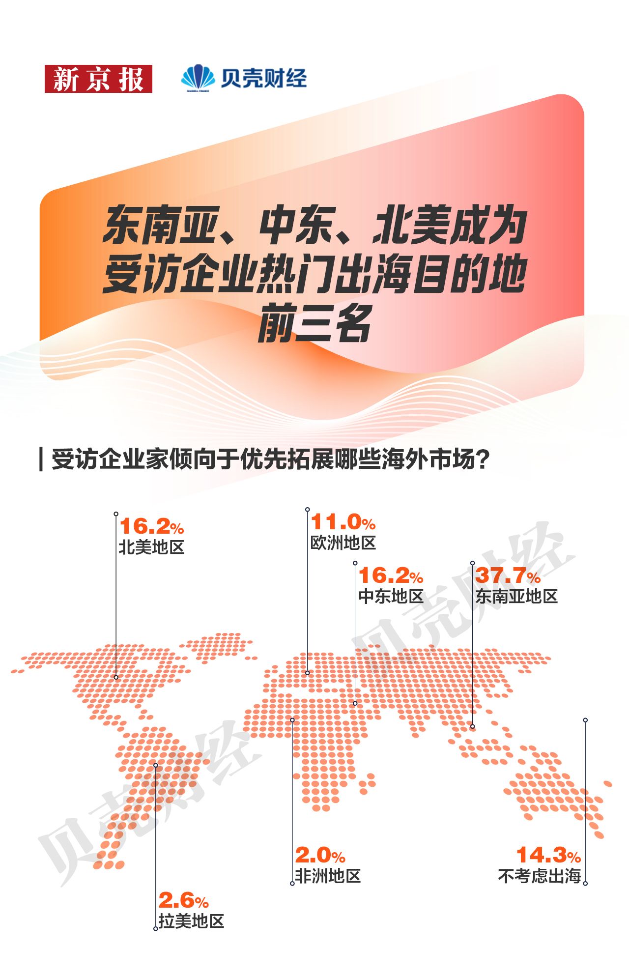 从海外拓展的区域选择看,企业更愿意在新兴市场与成熟市场间均衡布局。东南亚、中东、北美为出海首选布局区域,其中近四成企业优先选择东南亚。