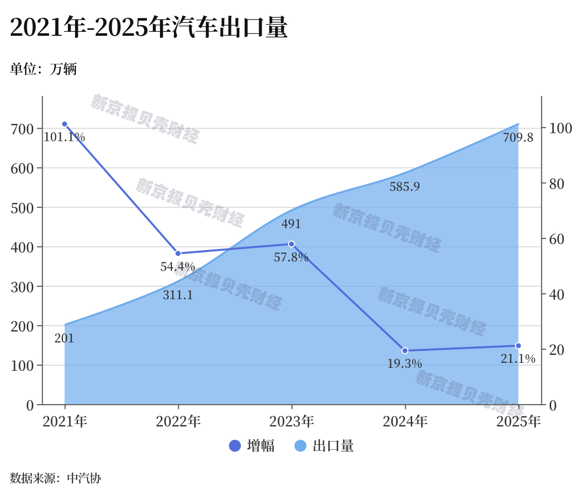 在2024年首次成为全球第一大汽车出口国后,我国汽车出口依旧强劲。2025年,我国汽车出口达到709.8万辆,同比增长21.1%。