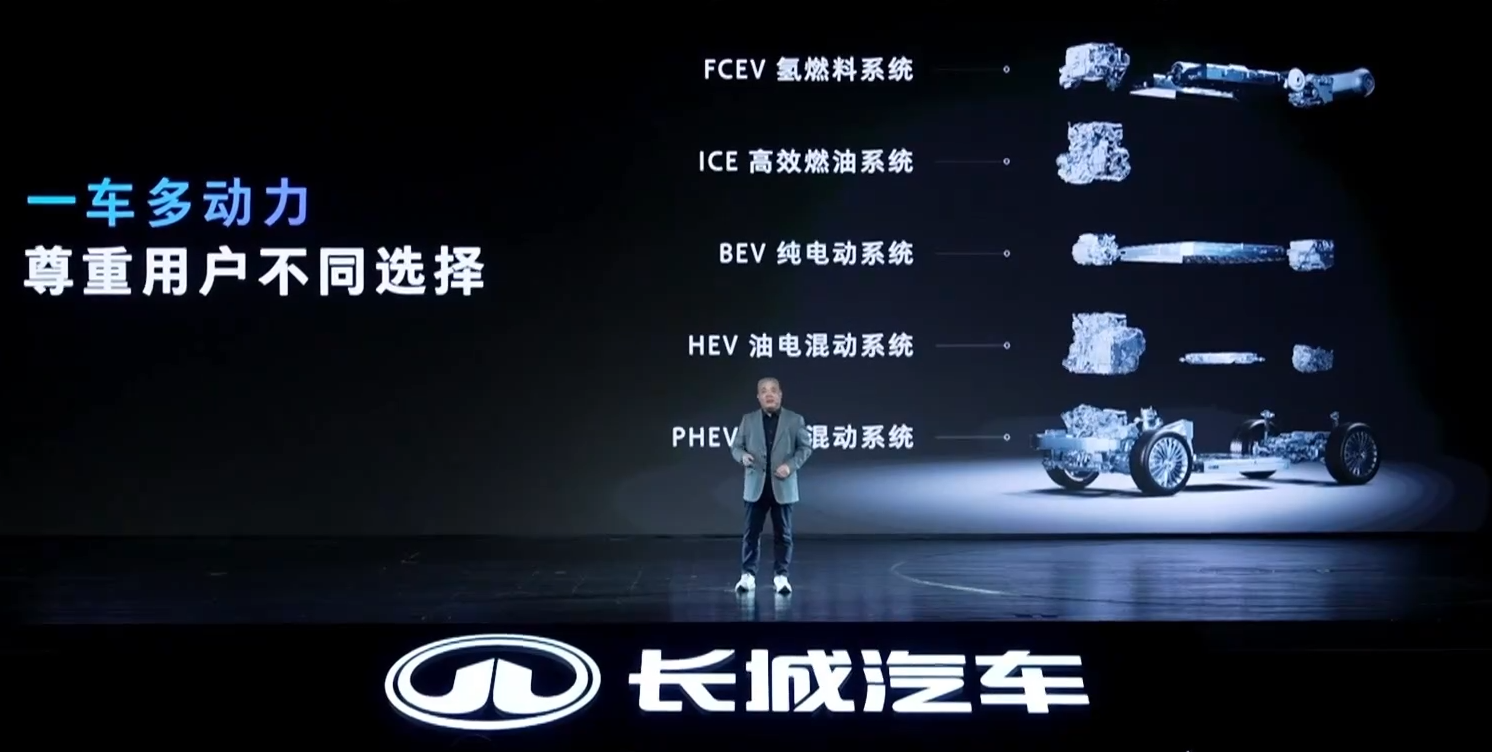 新京报贝壳财经讯(记者白昊天)1月18日,长城汽车正式发布动力汽车平台归元平台。该平台兼容FCEV氢燃料系统、ICE高效燃油系统(含汽油和柴油)、BEV纯电动系统、HEV油电混动系统、PHEV插电混动系统。长城汽车总裁穆峰表示,由于发动机无法直驱的这个缺陷,在中高速的这些场景,系统的传递链路过长,就会导致能量效率的层层损耗,所以企业坚决不会做增程式技术。