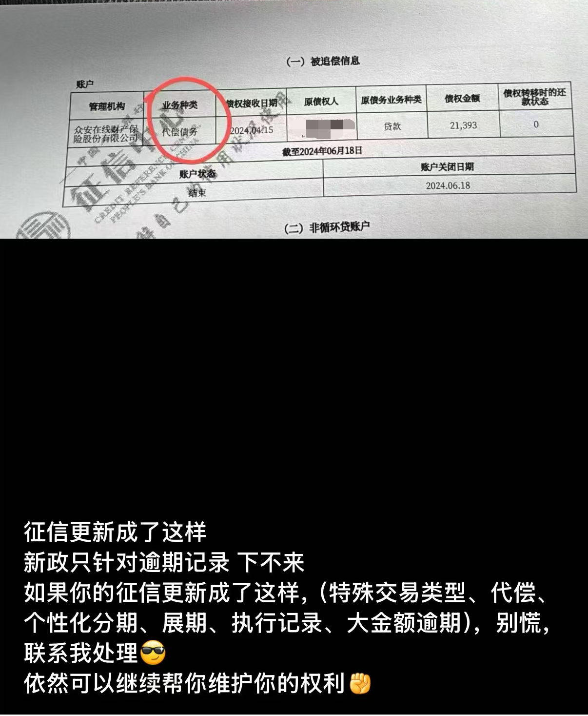 “逾期超过1万元也可申诉修复”“单笔收费2000-3000元不等”“可通过向银行或在征信系统申诉修复征信”。网络平台上,不少中介打着征信修复的旗号揽客,抛出“橄榄枝”。