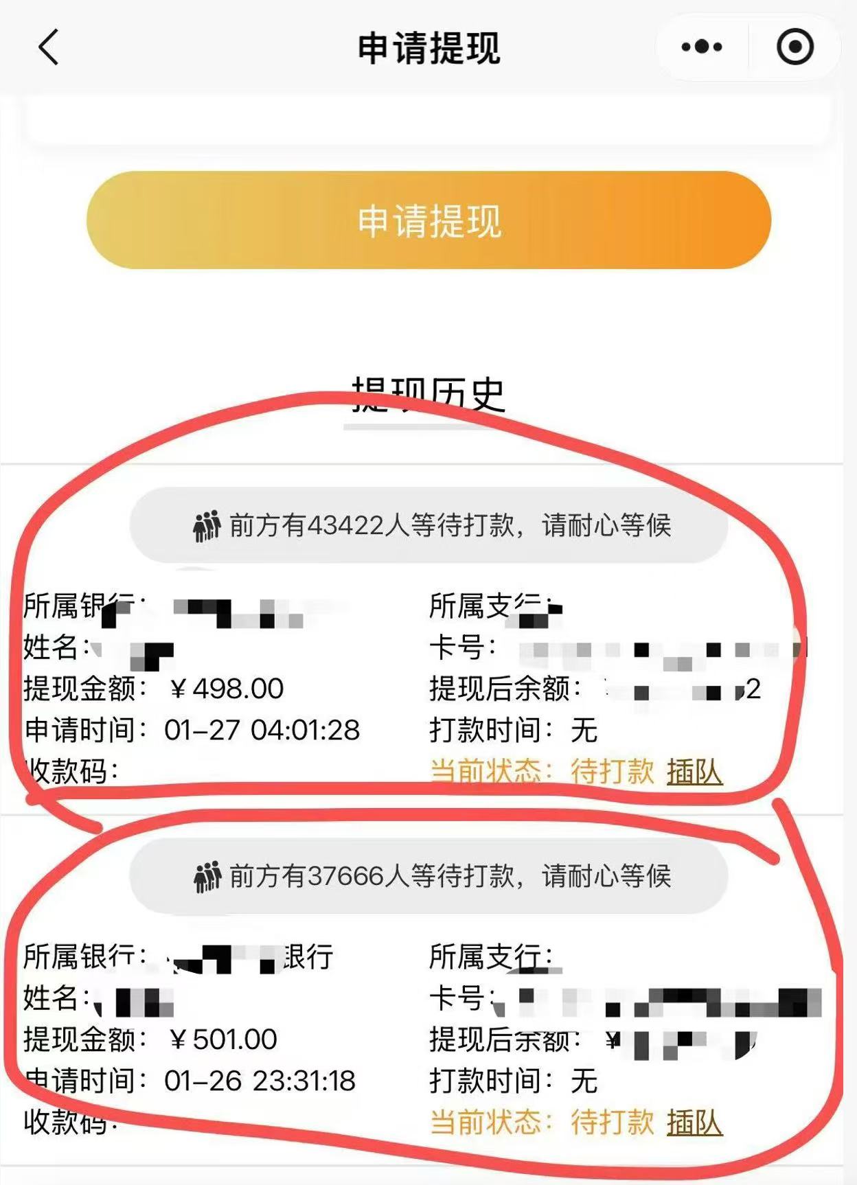 平台提现通道排号超4万人,每日500元兑付承诺成“空头支票”